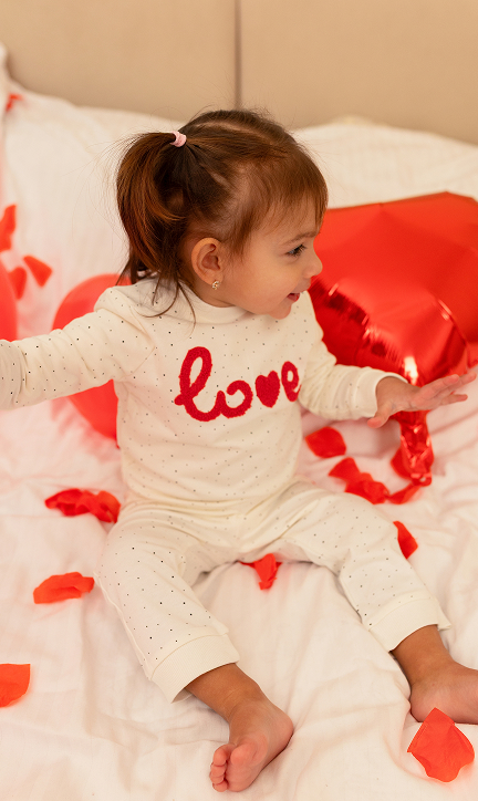 Pripravite se na praznovanje valentinovega v družinskem krogu! Izberite prikupne outfite s srčastimi motivi