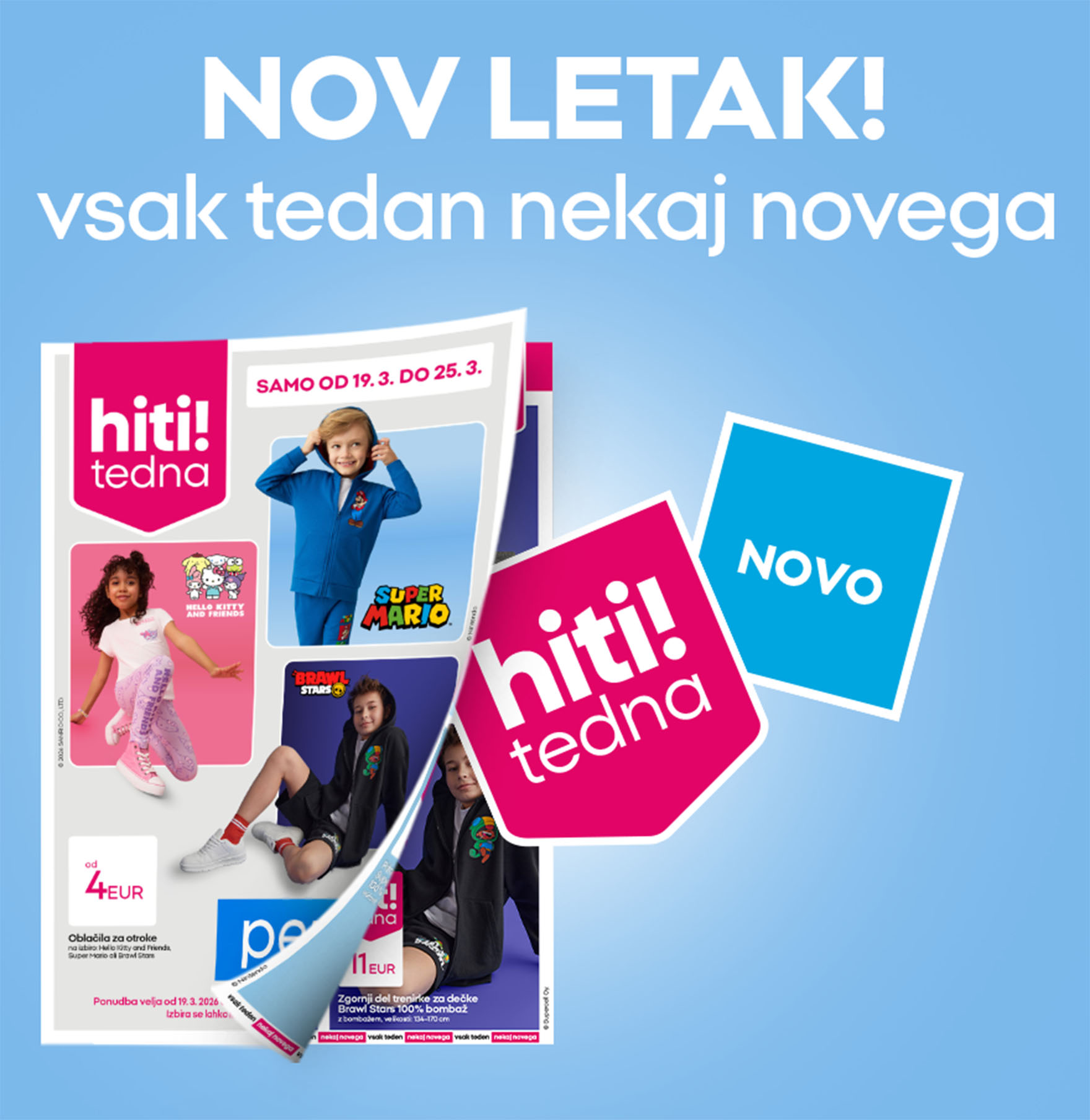 Končno je tu! Kolekcija za male in velike oboževalce ter oboževalke Hello Kitty. Odkrijte spodnje perilo, pižame, oblačila za otroke in plišaste igrače, ki jih je navdihnila priljubljena risanka. In kot vedno v trgovinah Pepco: po nizkih cenah!