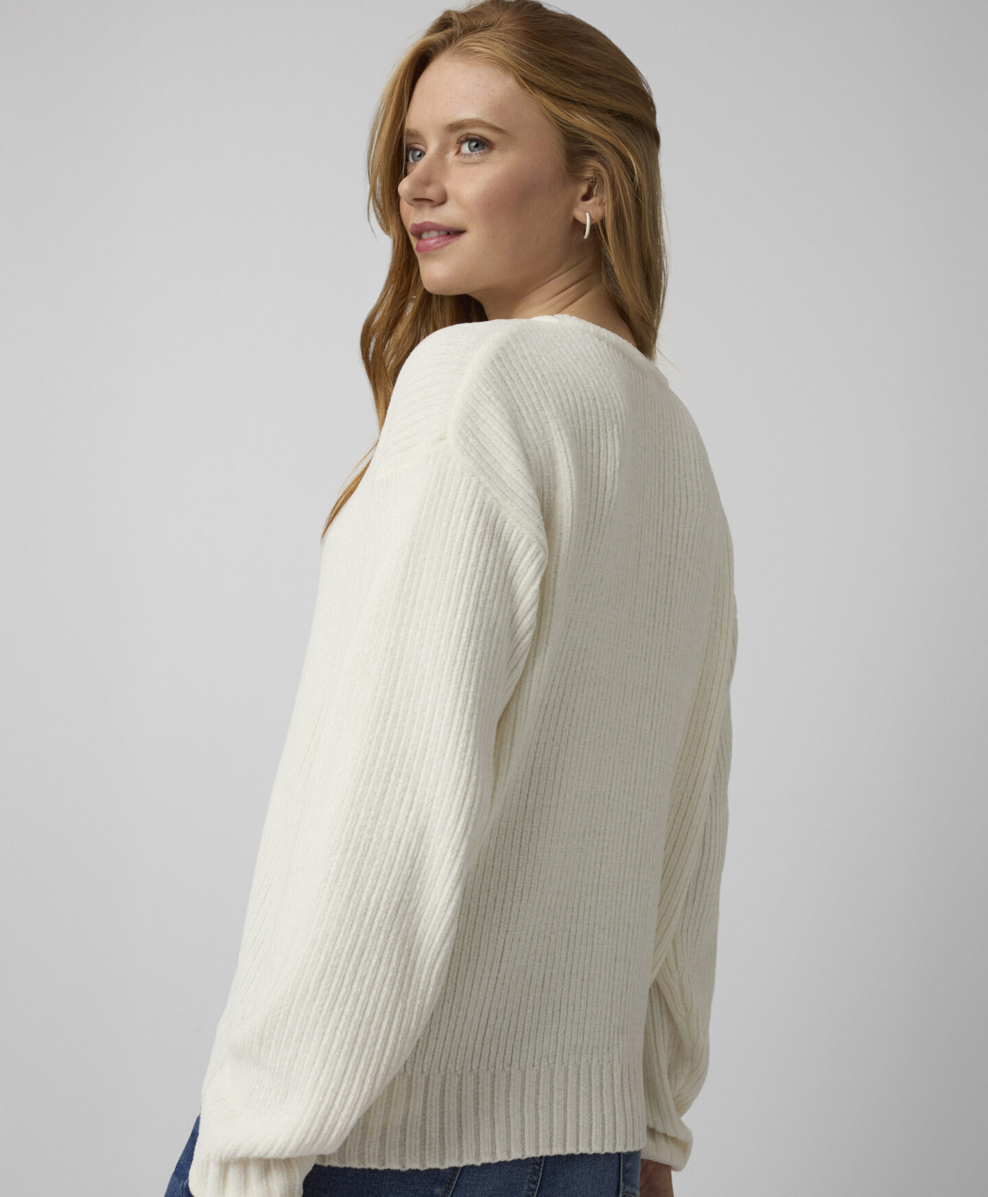 Bel pulover za ženske iz ženilje se lepo poda tako k elegantnim kot vsakodnevnim opravam. Je nežen na otip, zato zagotavlja maksimalno udobje. Na voljo v dveh barvah.