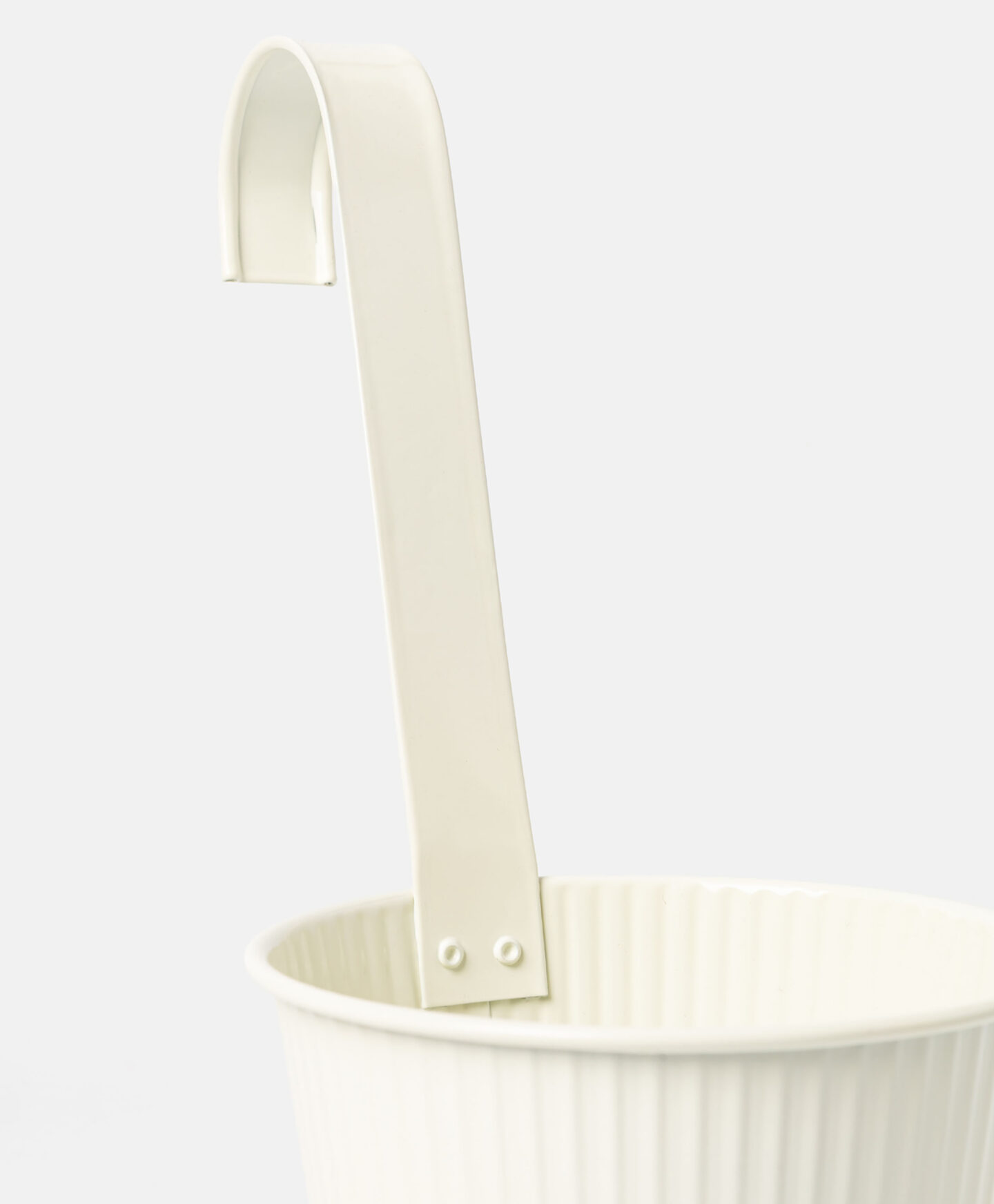 Bel viseč cvetlični lonec z rebrastimi stenami vas bo očaral s pomladnim dizajnom. Praktičen kavelj vam omogoča, da ga postavite na balkon, ograjo, pod strop ali na steno, s čimer boste optimalno izkoristili prostor. Kovinska konstrukcija je vzdržljiva, odporna proti koroziji, soncu in vremenskim razmeram, zato bo lonec dolgo v uporabi. V ponudbi so na voljo različni vzorci.