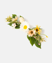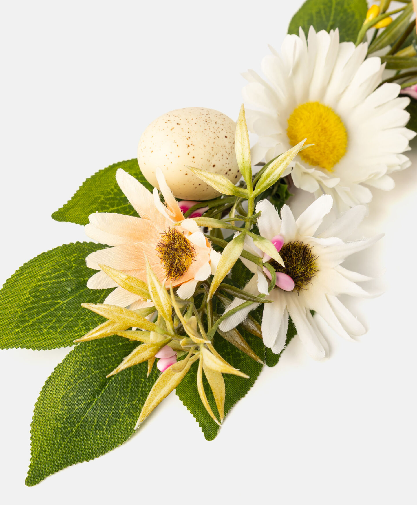 Bel venček je že pripravljen aranžma, ki ga lahko postavite na ročaj velikonočne košare. Je lahek, vzdržljiv in odporen na muhasto vreme. Je popolna alternativa svežemu cvetju, ki v tem letnem času morda ni na voljo. Na voljo v treh različnih dizajnih.