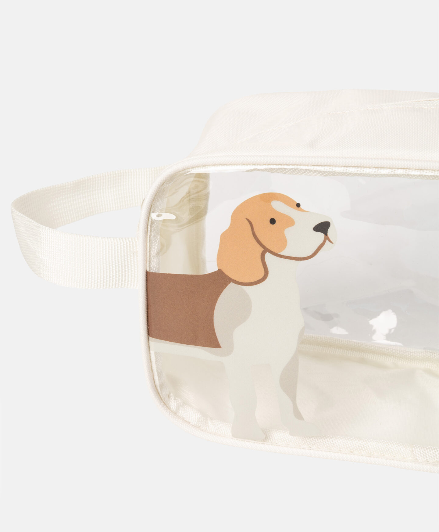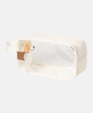 Bela kozmetična torbica je popolna za vsako potovanje. Zaradi prozornih sten boste izdelek, ki ga potrebujete, takoj našli. Torbica je izdelana iz visokokakovostnega materiala ter tako ščiti ostalo prtljago pred morebitnim razlitjem šampona ali olja.