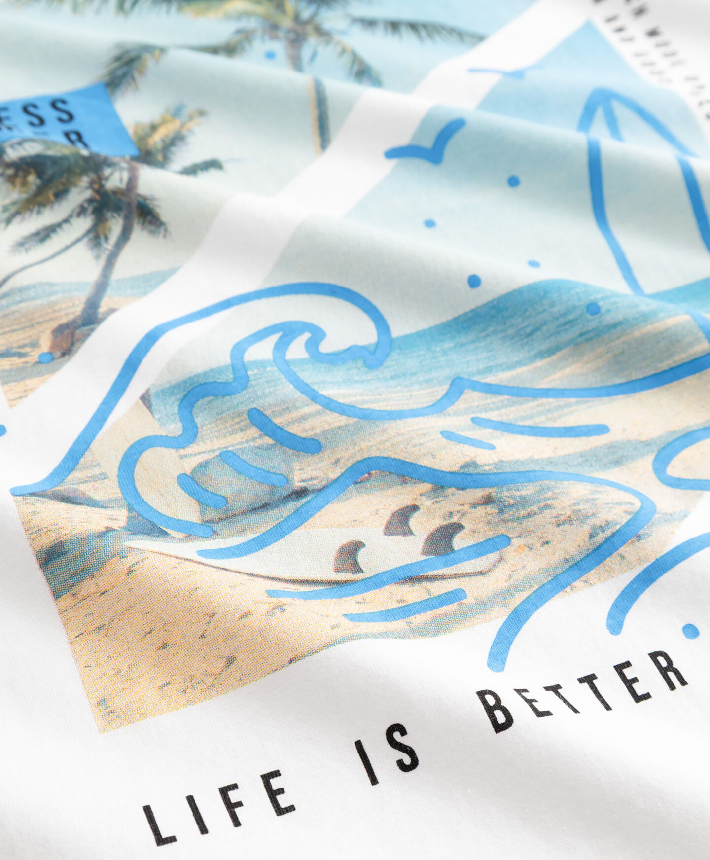 Bela majica za dečke 100% bombaž je hit sezone. Bombaž tudi med najbolj intenzivno igro na soncu koži omogoča, da diha. Material je mehak in trpežen. Edinstven motiv na sprednji strani nikoli ne gre iz mode!
