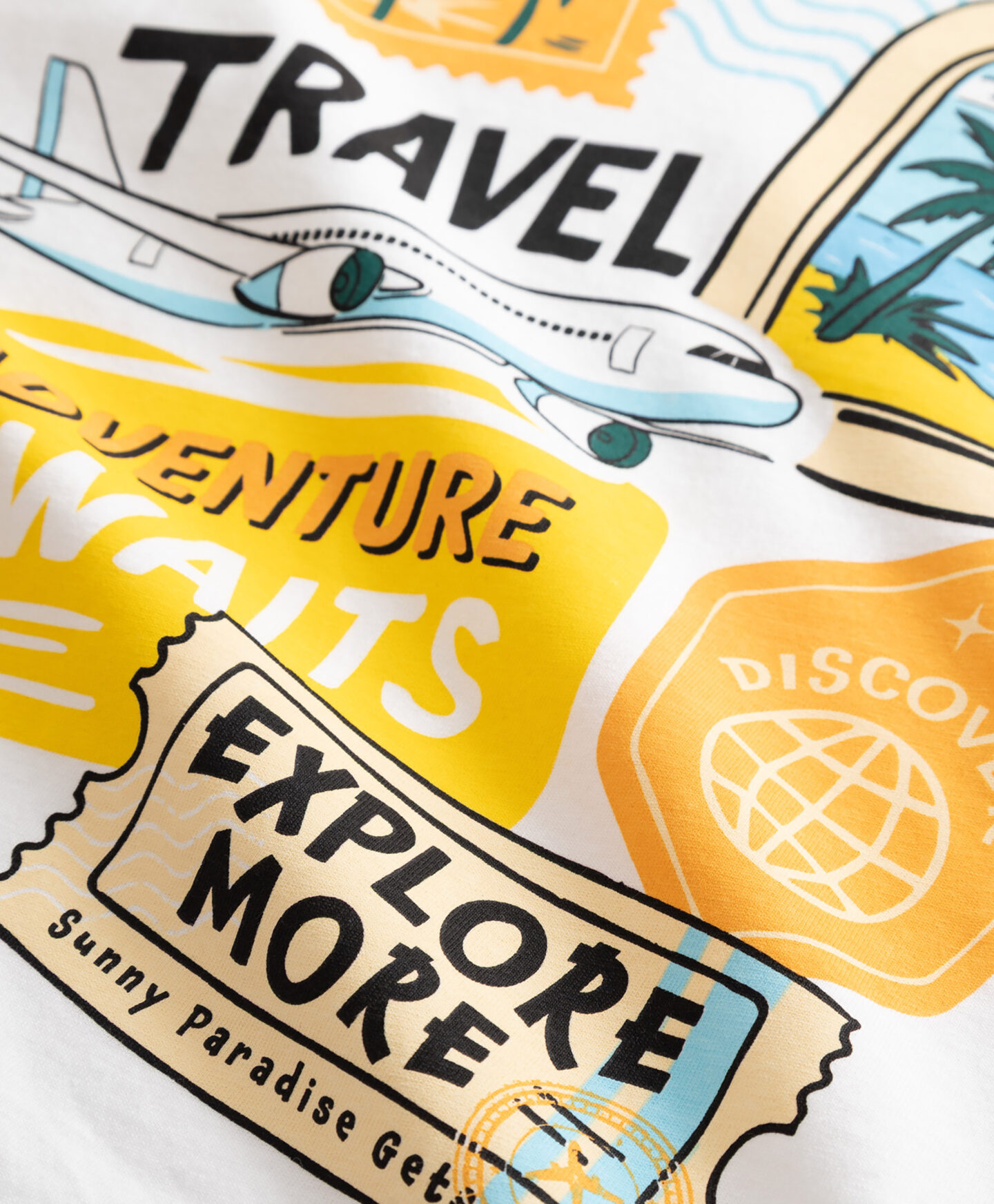 Bela majica za dečke iz 100% bombaža je popolna izbira za mlade popotnike. Bombaž je zračen in neverjetno mehak. Potisk, ki so ga navdihnila dolga potovanja, je najlažji način, da v otroško garderobo hitro vnesete počitniški duh.