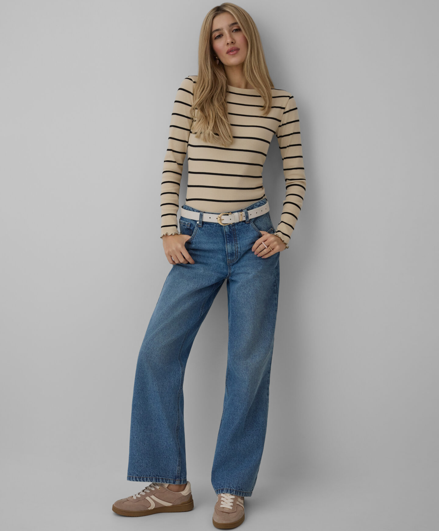 Bež črtasta majica za ženske