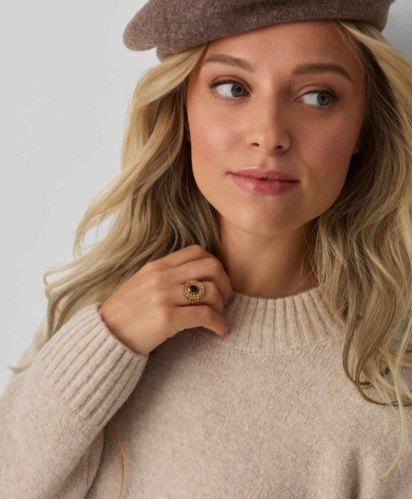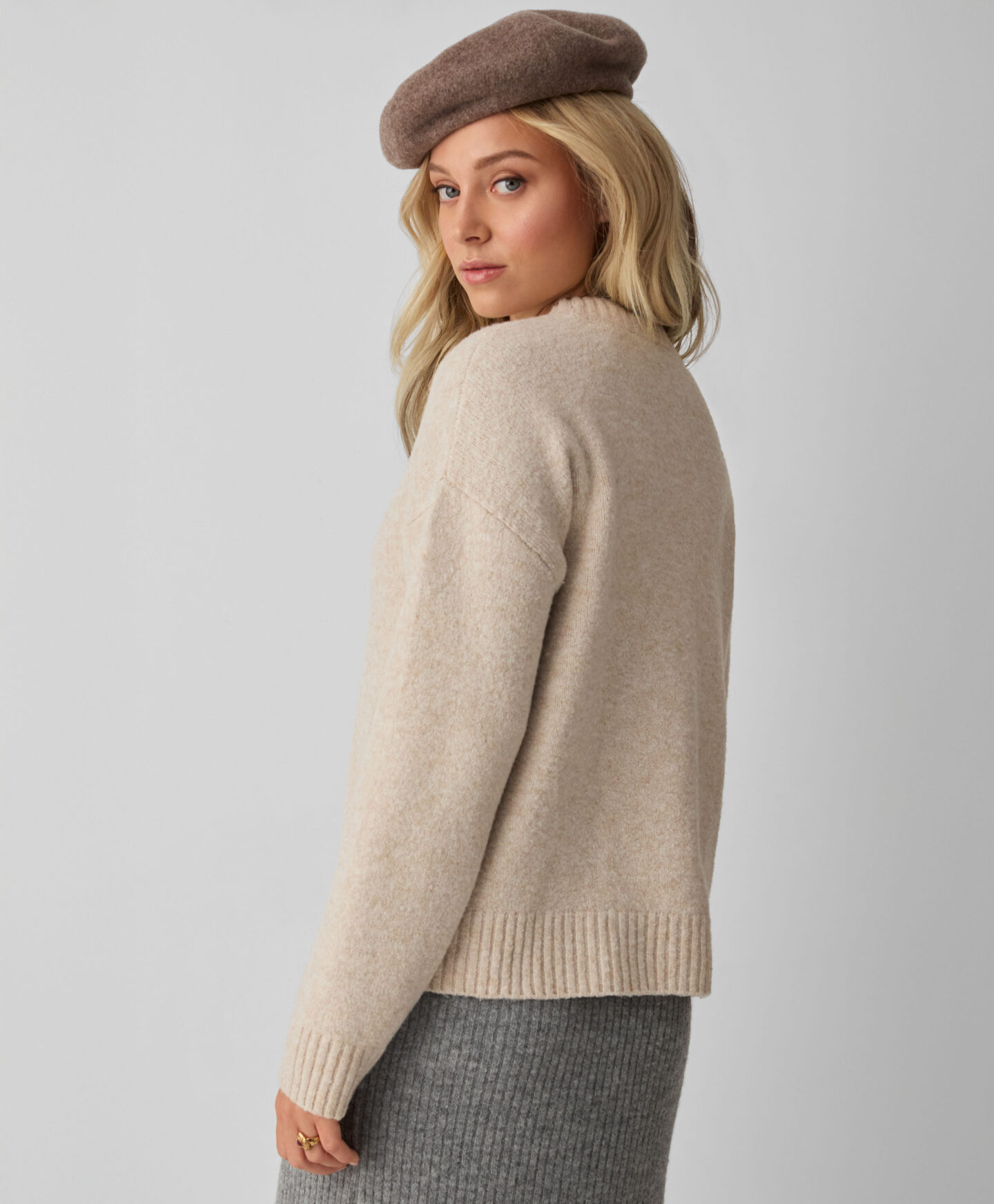 Bež pulover za ženske z gladko teksturo in stoječim ovratnikom je kot nalašč za premagovanje mraza. Je topel, udoben in eleganten. Idealen bo za v pisarno, za druženja s prijatelji ali vsakodnevne obveznosti v mestu. Odlično se bo podal tako h kavbojkam kot tudi k elegantnim ali športnim hlačam. Na voljo v dveh barvah.