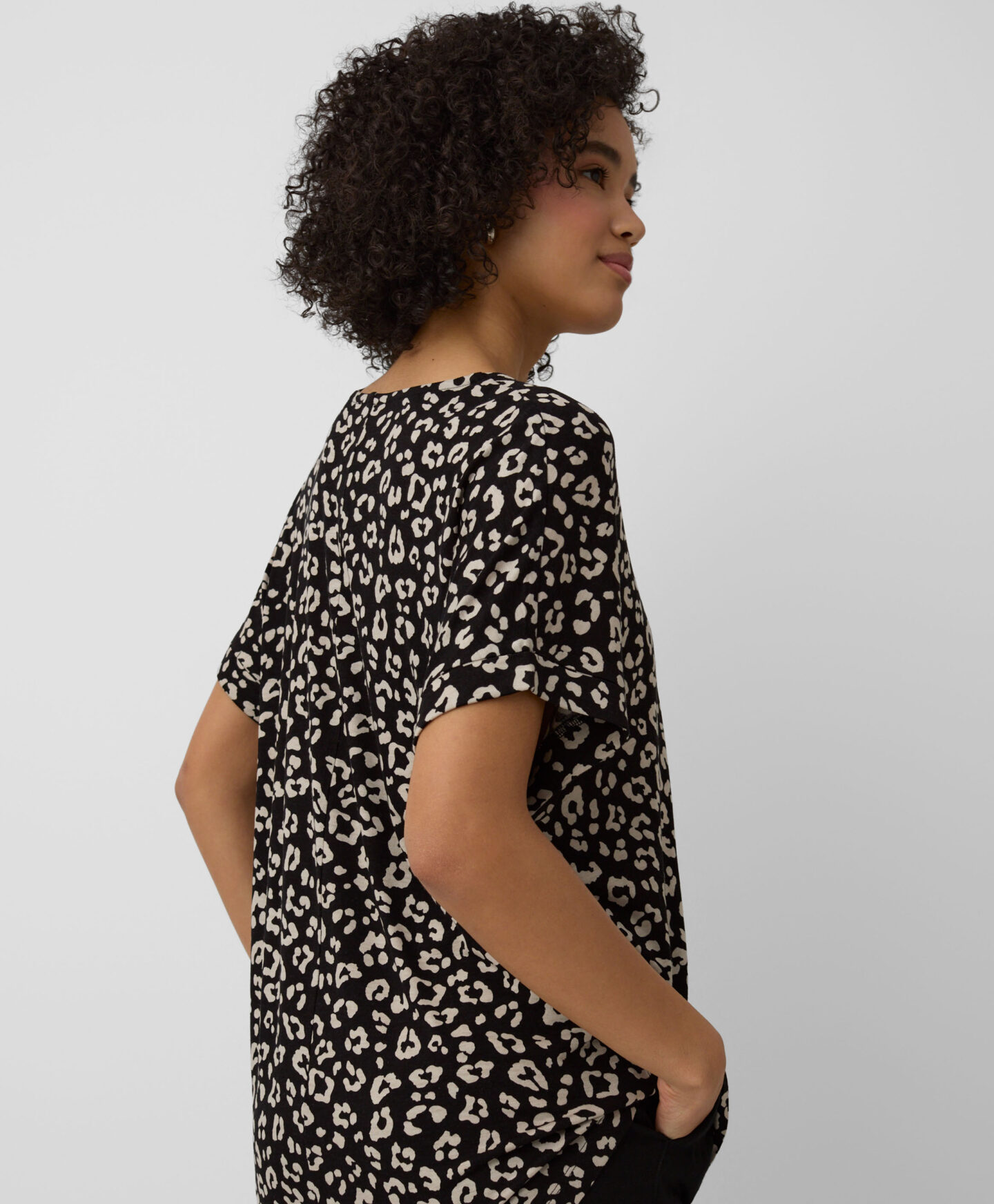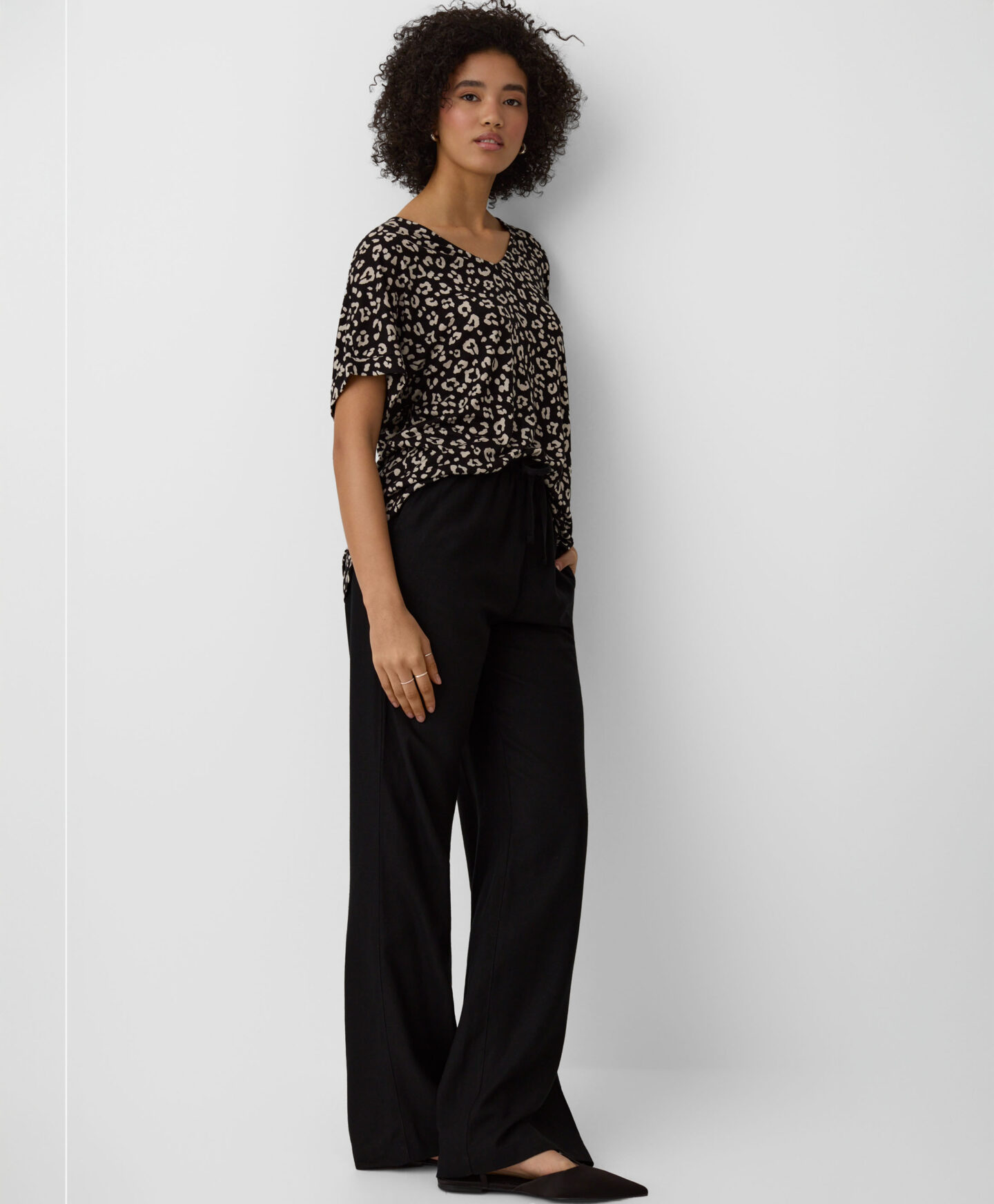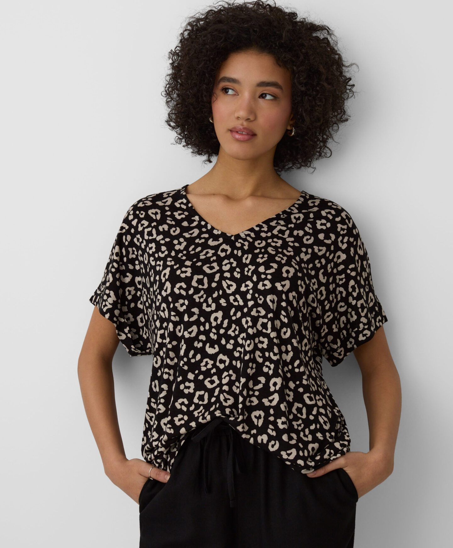 Bluza z V-izrezom za ženske 100% viskoza združuje udobje in univerzalen dizajn. Kombinirajte jo s svojimi najljubšimi kavbojkami ali bolj elegantnimi hlačami s chino ali cigarette krojem. Je odlična izbira za v pisarno, za hiter nakupovalni izlet ali na družinski izlet.