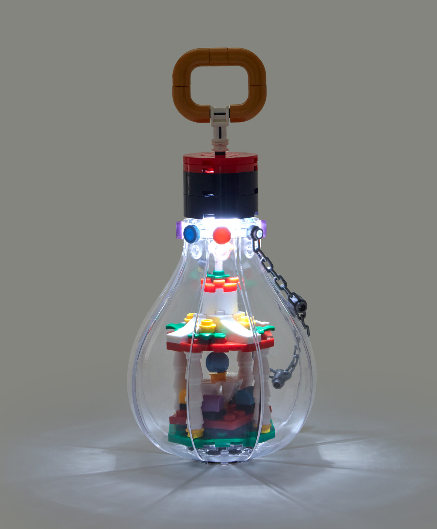 Božična žarnica iz kock z motivom hišice v prostor vnese vzdušje naravnost iz praznične vasi. Miniaturna hiša, ki se skriva v žarnici, zasveti s prijetno svetlobo in ustvarja čaroben učinek. Okrasek se bo odlično obnesel na praznični mizi, predalniku ali božičnem drevescu.