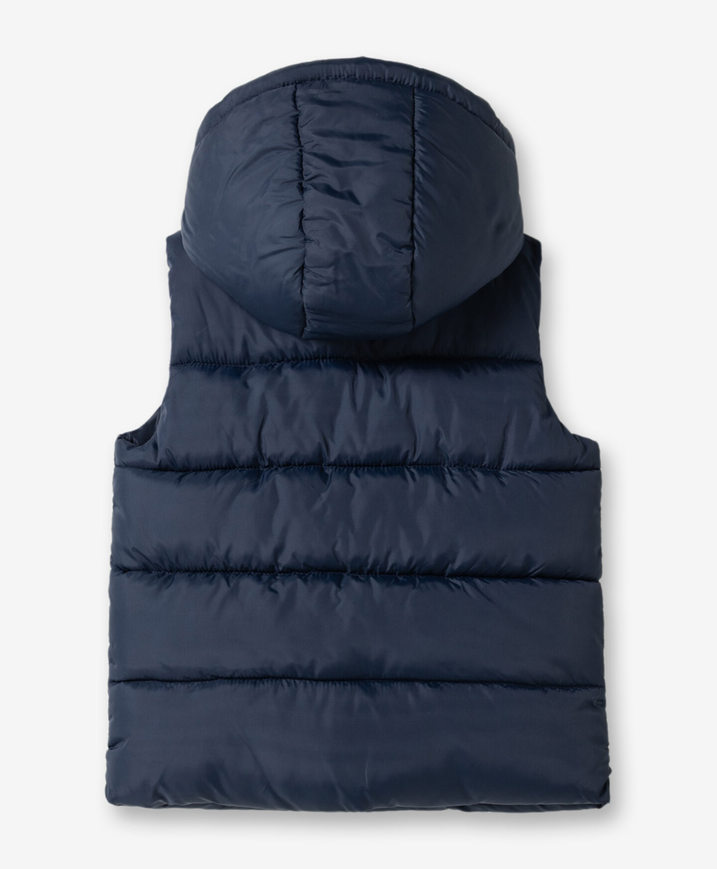 Brezrokavnik s kapuco za dečke je popoln dodatek k garderobi za prehodna obdobja. Brezrokavnik se bo odlično obnesel v kombinaciji z zgornjim delom trenirke ali majico z dolgimi rokavi. Globoki žepi bodo greli roke v hladnih dneh, kapuca pa bo otroka zaščitila pred vetrom. Brezrokavnik je lahek, topel in zelo vsestranski. Klasična mornarsko modra barva bo popestrila prav vsak outfit.