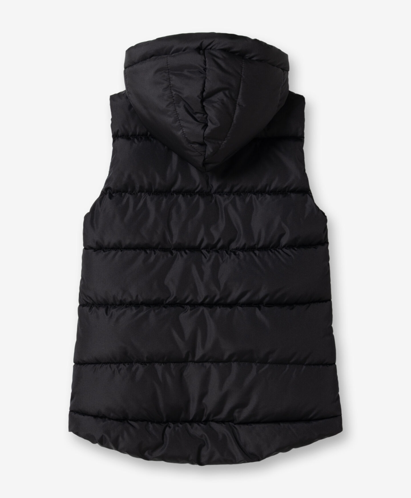 Brezrokavnik za deklice s praktično zadrgo je lahek, topel in eleganten. Klasična barva bo odlično dopolnila večplastne stajlinge, na primer zgornji del trenirke ali pulover. Prostorni žepi bodo greli roke v hladnih dneh, kapuca pa bo otroka ščitila pred vetrom. Daljši kroj zagotavlja še več udobja.