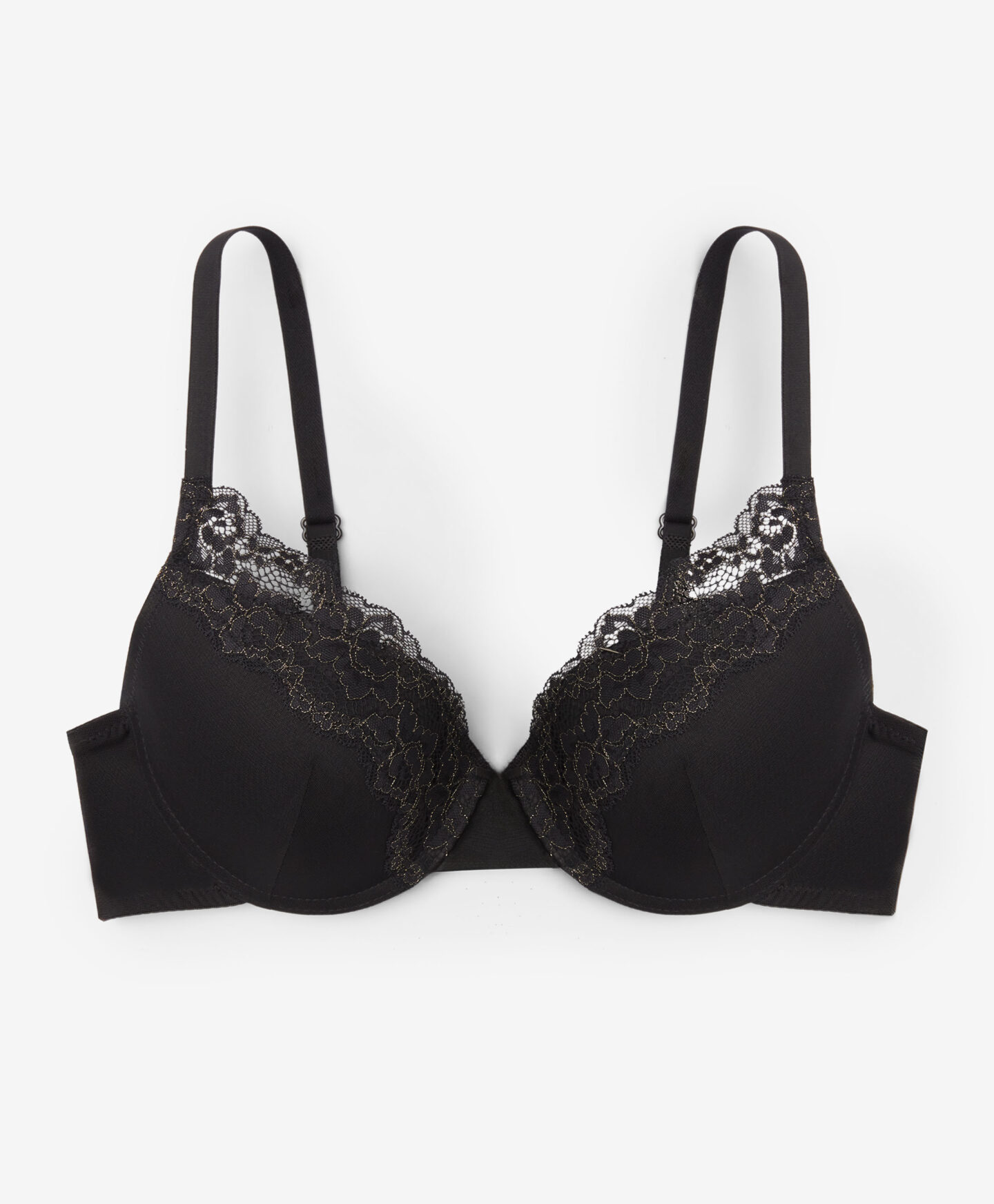 Čipkast push-up nedrček za ženske z dodatkom lureksa je odlična izbira za ženske, ki želijo poudariti svoje obline. Čipkast zaključek v kombinaciji s sijočim lureksom ustvarja prefinjen učinek. Nedrček je odlična izbira pod oblačili z globljim izrezom, saj krepi samozavest, hkrati pa zagotavlja udobje. V kolekciji so na voljo tudi ujemajoče spodnjice.