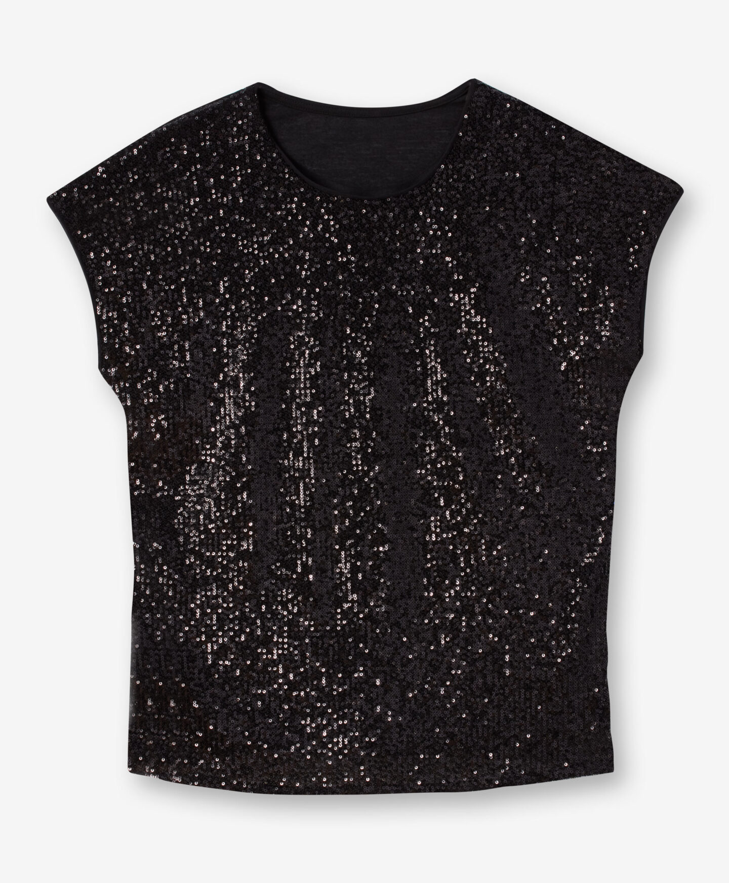 Črna majica za ženske z bleščicami ima pleten hrbtni del, ki zagotavlja udobje in svobodo gibanja. Bleščeč sprednji del vsakemu outfitu doda poseben sijaj in pritegne pogled, zaradi česar bo majica popoln kos večerne garderobe. Čudovito se kombinira z elegantnimi hlačami ali krilom. Na voljo v dveh barvah.