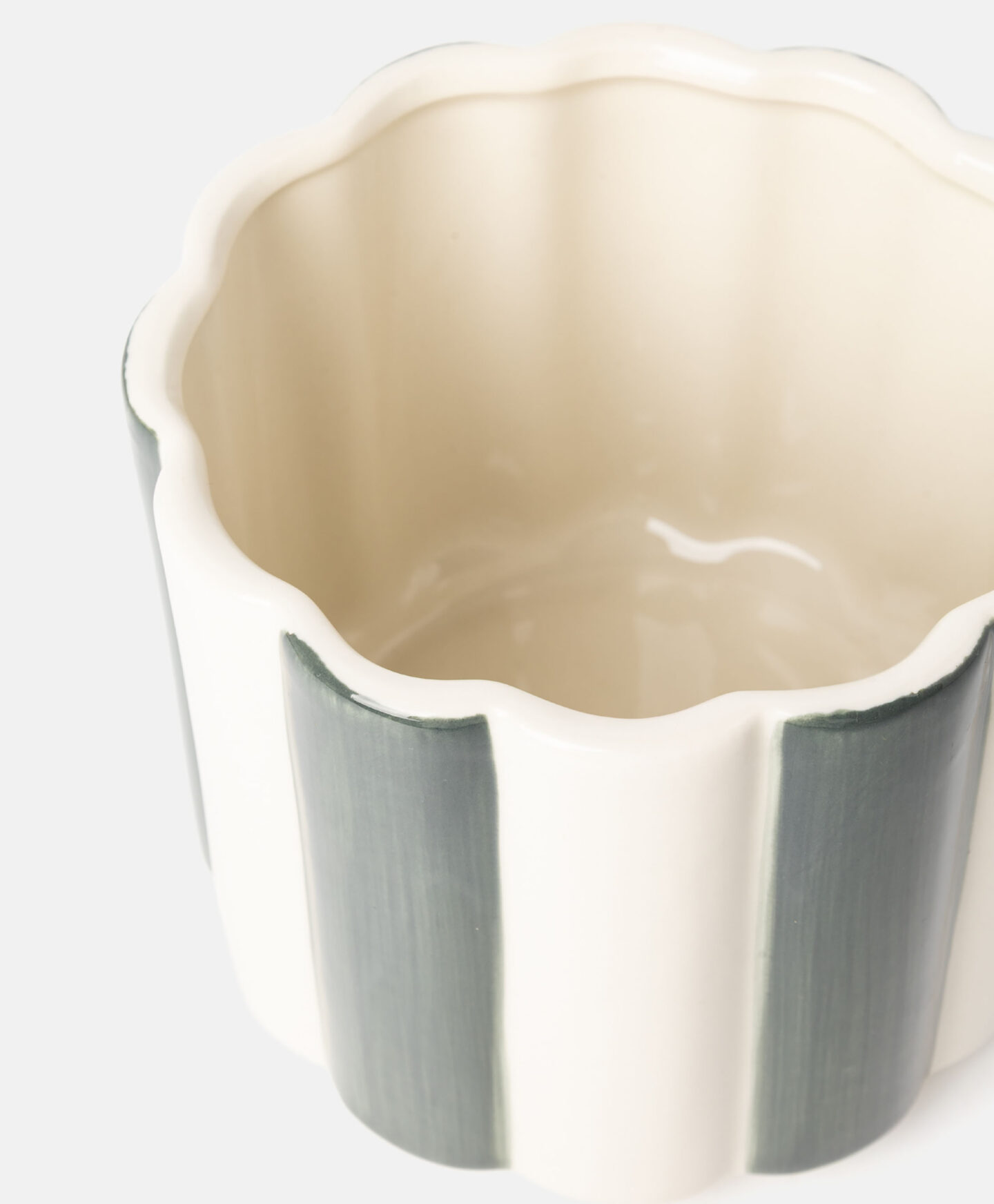 Črtast cvetlični lonec iz keramike lepo dopolnjuje vazo z enakim vzorcem. Lonec bo lepo poudaril lepoto vaših rastlin, hkrati bo služil tudi kot edinstven okras. Klasični vzorec se bo odlično podal tako k modernim kot k bolj klasičnim interierjem. Lonec je izdelan iz trpežne kamenine in je enostaven za čiščenje.