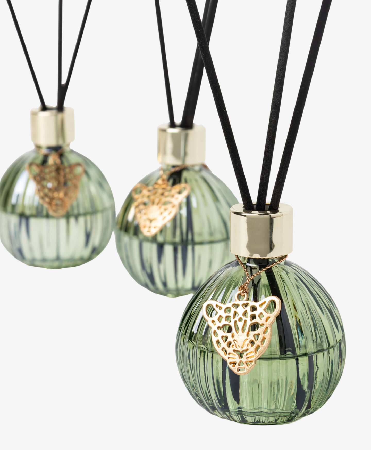 Darilni komplet bo navdušil vsakega ljubitelja unikatnih dišav. Sestavljen je iz treh okroglih difuzorjev dišav. Steklene posodice so estetskega videza in lahko krasijo tako kopalnico kot dnevno sobo ali spalnico. Postavite jih na predalnik ali mizo in uživajte v izjemni aromi.