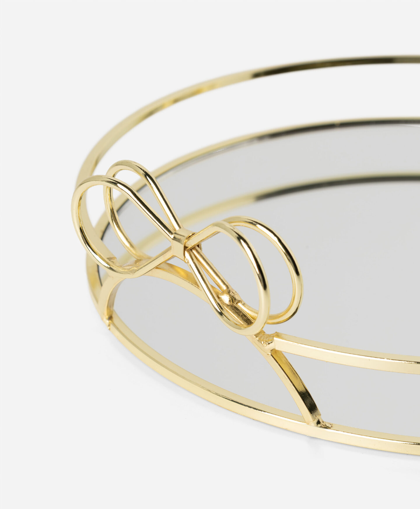 Okrasni pladenj s pentljami na ročajih je eleganten dodatek, ki bo obogatil vsak interier. Zaradi zrcalnega dna pladenj izstopa, popoln pa bo za postrežbo kave ali čaja ali kot podlaga za vazo ali dišečo svečo. Pladenj je trpežen in enostaven za čiščenje.