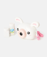 Fotoaparat za milne mehurčke v obliki zajčka je popolna igrača za vsakega otroka, ki obožuje živali in milne mehurčke. Priročen nastavljiv trak otroku omogoča, da fotoaparat obesi okrog vratu, med igro pa ima tako proste roke. Enostaven mehanizem, ustvarjen za majhne ročice, otroku omogoča pihanje mehurčkov brez pomoči odrasle osebe. V ponudbi so na voljo različni motivi. Komplet vsebuje tekočino za milne mehurčke.