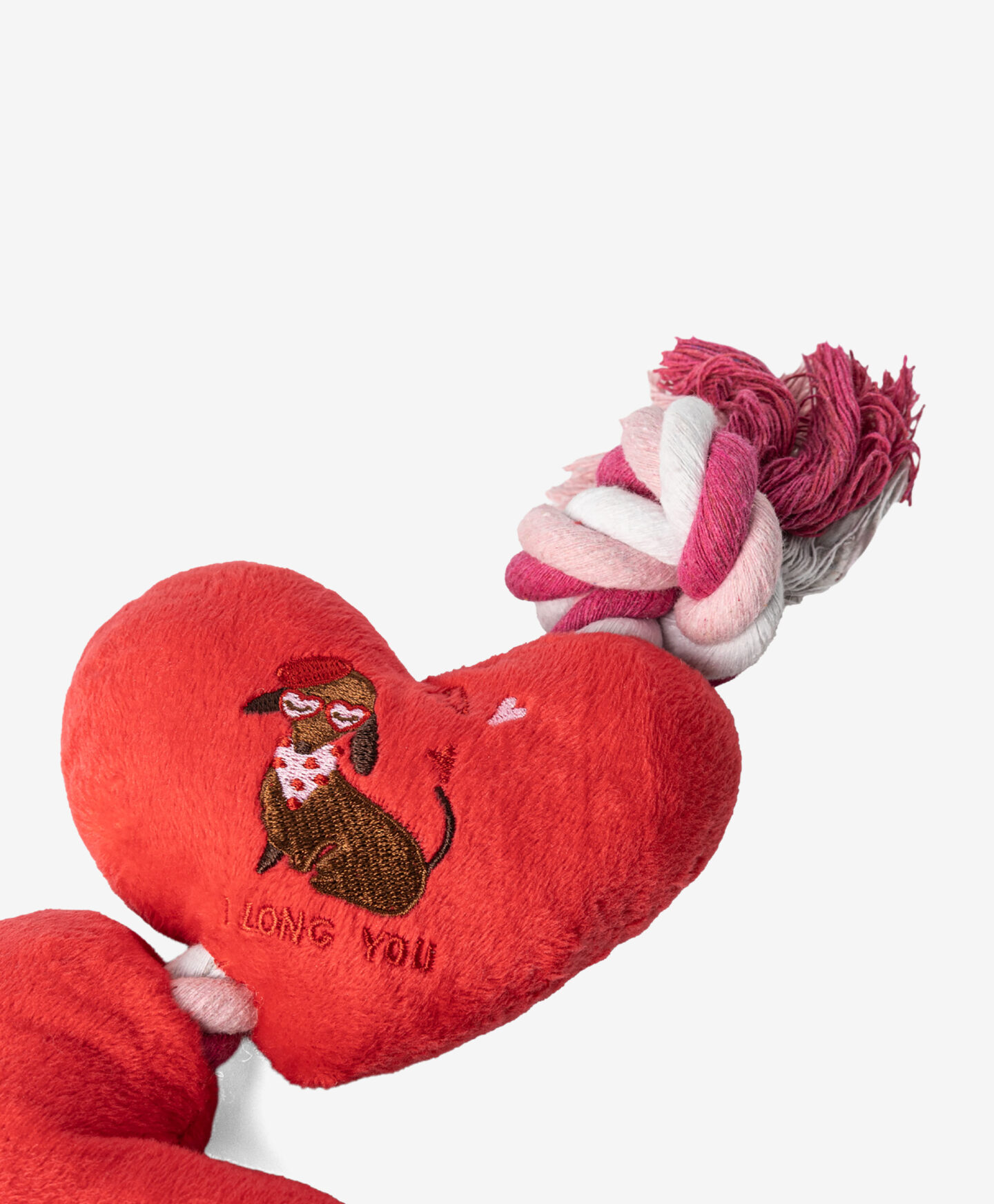 Igrača za psa na vrvi z dvema srcema predstavlja odlično izbiro za pse, ki obožujejo aktivno igro. Eno izmed src piska, kar psa še dodatno stimulira in spodbuja igro. Trpežna vrv je popolna za vlečenje, plišasta srca pa vašemu ljubljenčku zagotavljata varno in prijetno žvečenje. Igrača za psa predstavlja odličen način za skupno preživljanje časa.