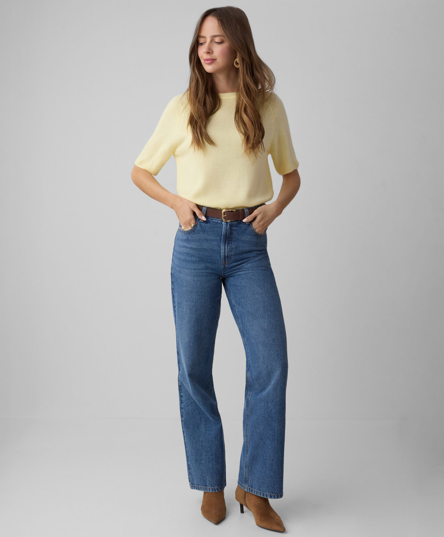 Kavbojke za ženske iz 100% bombaža s širokimi hlačnicami so obvezen kos vsake garderobe, ne glede na letni čas. Odlično so videti tako v kombinaciji z ohlapno majico kot z elegantno belo srajco. Popolne bodo za v pisarno, na zmenek ali druženje s prijatelji. Klasična modra barva ponuja popolno svobodo pri kombiniranju.