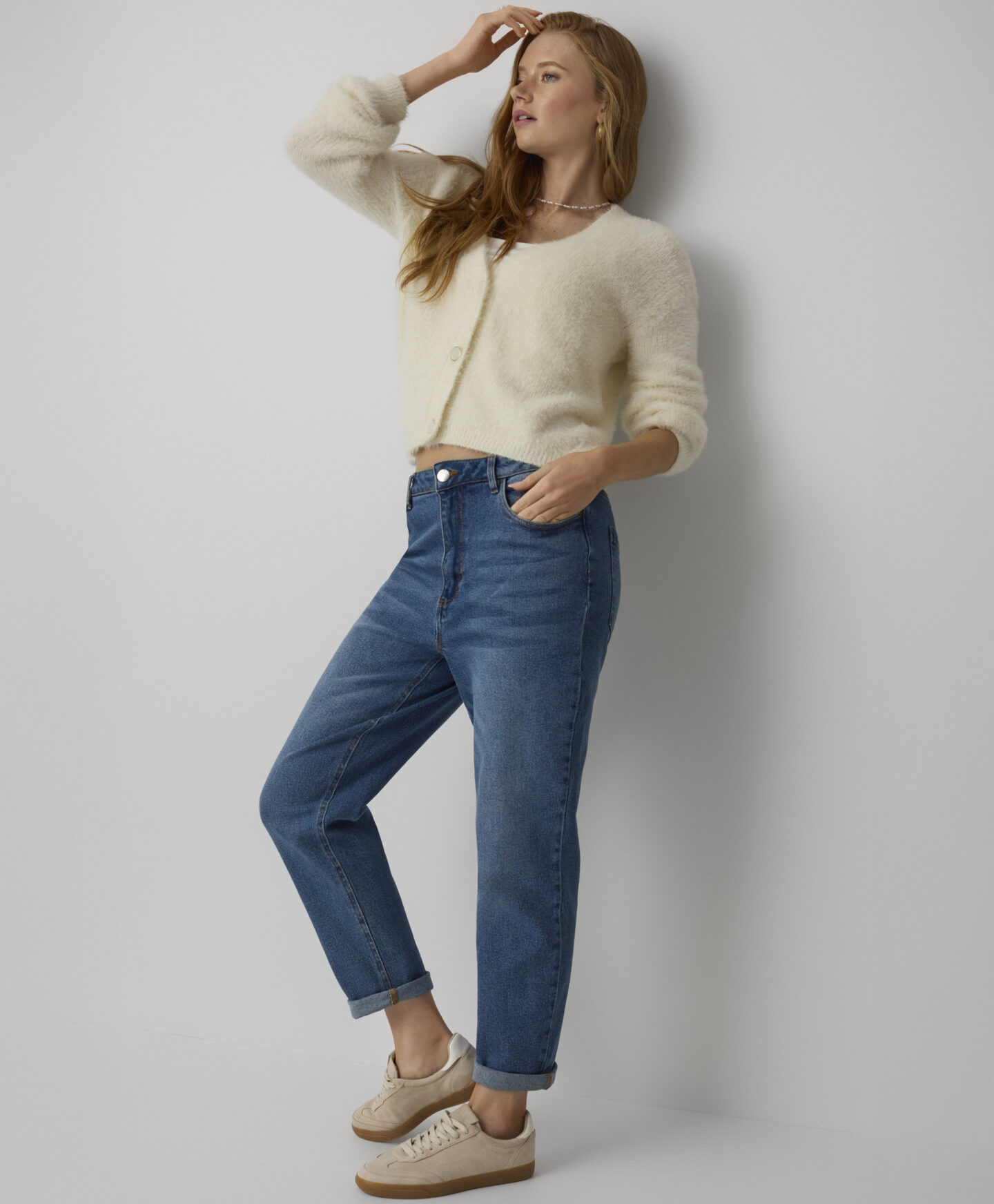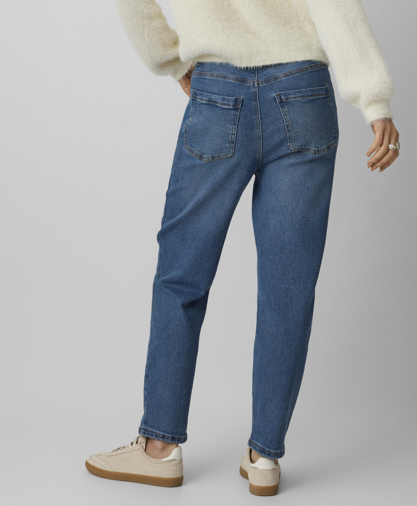 Kavbojke za ženske z visoko vsebnostjo bombaža se ponašajo s klasičnim mornarskim odtenkom, zato jih lahko kombinirate s številnimi majicami in puloverji iz vaše garderobe. Popolne so tako za prosti čas kot v službo ali po nakupih.