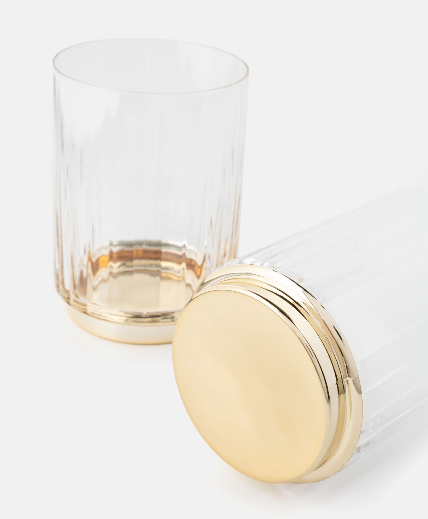 Komplet 2 rebrastih kozarcev z zlatim dnom je odlična izbira za vse tiste, ki cenijo eleganco tudi v vsakodnevnih stvareh. Umetelen relief kozarcem doda čar, zlata osnova pa pridih razkošja. Popolna izbira za posebne priložnosti in vsakodnevno uporabo. Komplet je odličen tudi kot darilo ali okrasni dodatek. V ponudbi so na voljo tudi kozarci za vino.