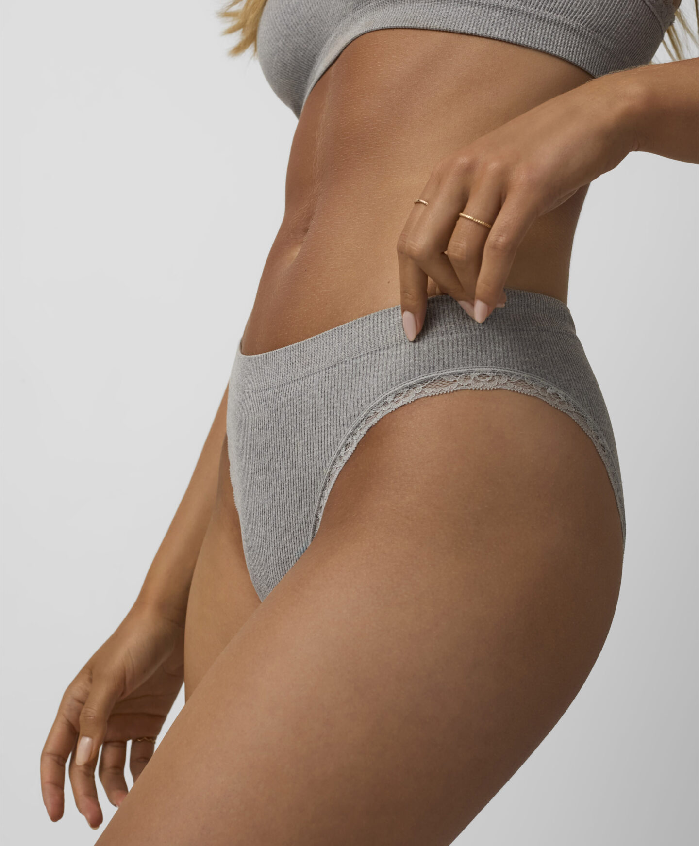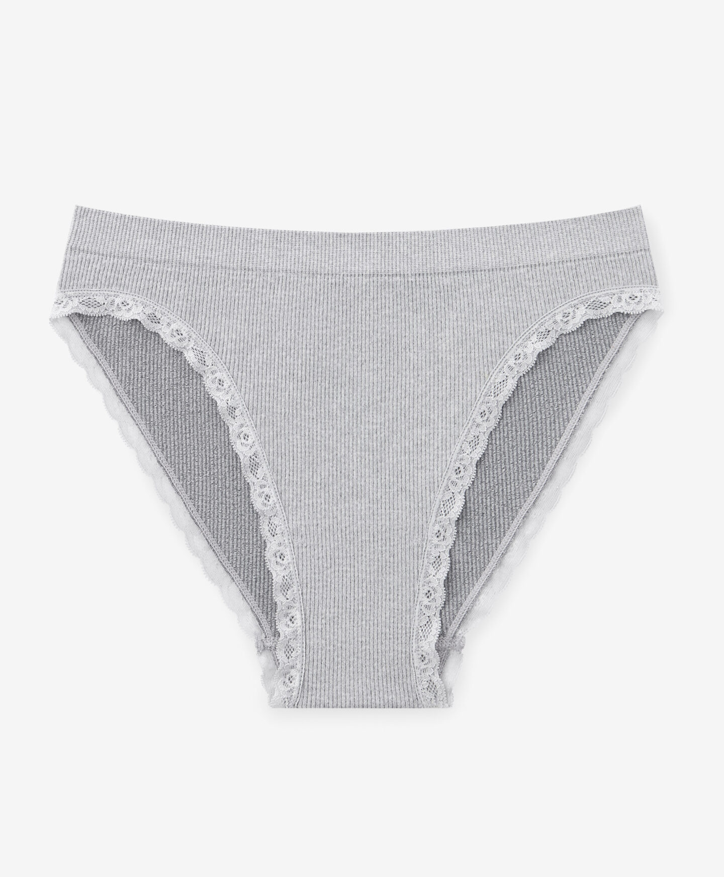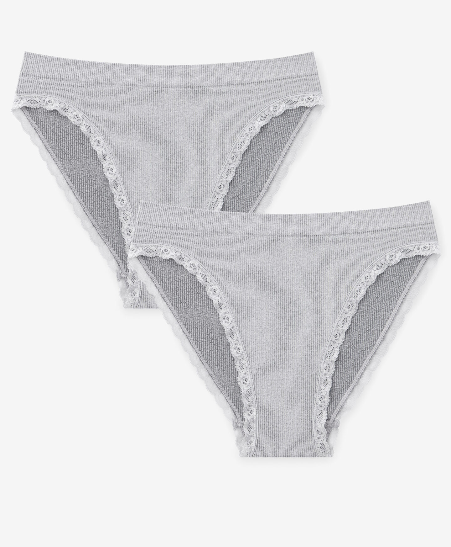 Komplet 2 sivih bikini spodnjic s čipko je popoln za ljubiteljice romantičnega spodnjega perila. Čutna čipka buri domišljijo, a je odlična tudi za vsakodnevno nošenje. Bikini kroj zagotavlja popolno prekrivanje in udobje ter lepo poudari ženske obline.