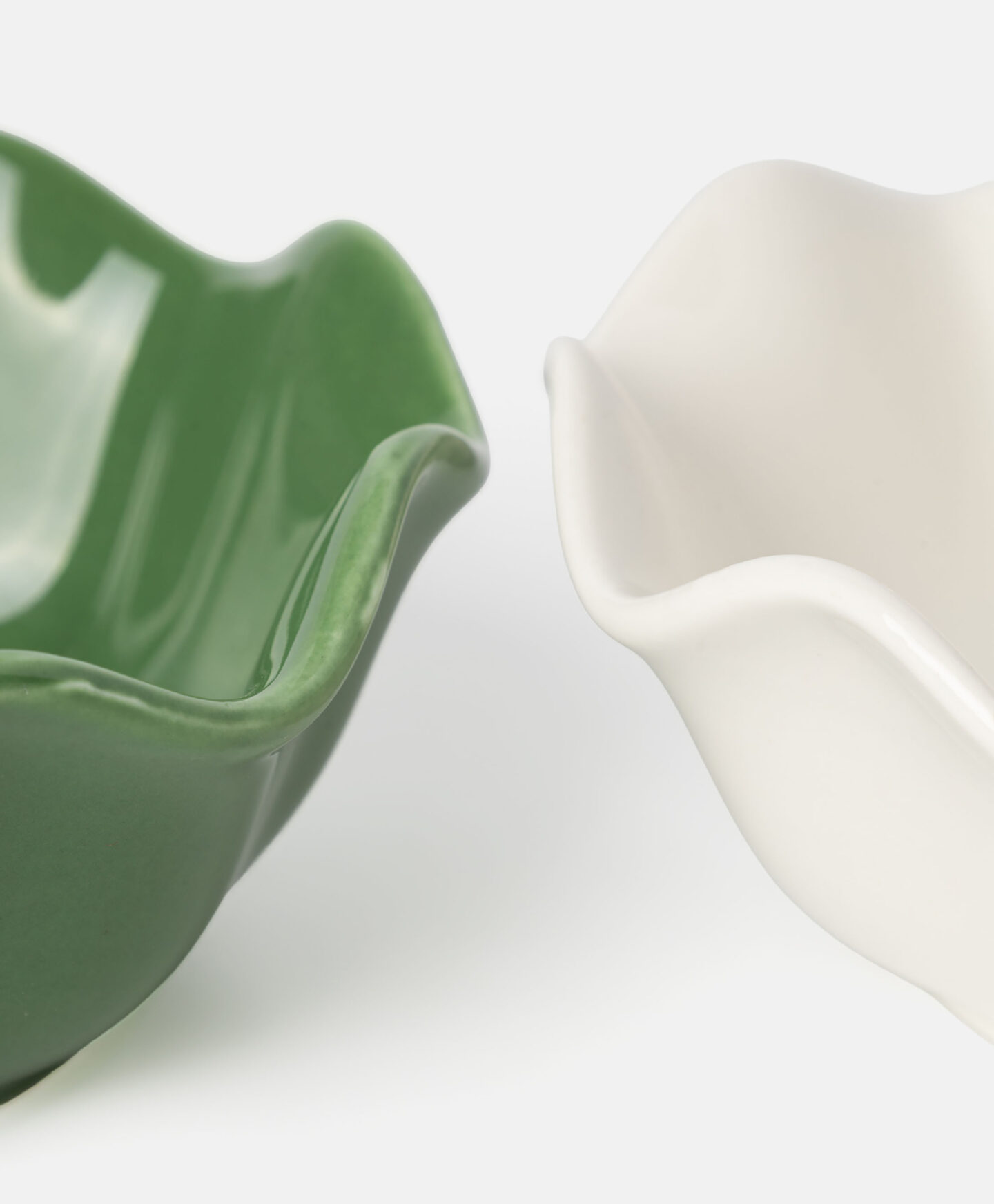 Komplet 2 servirnih skled iz porcelana bo kot nalašč za postrežbo vaših najljubših prigrizkov. Porcelan je trpežen, enostaven za čiščenje in ima dolgo življenjsko dobo, zato so sklede popolne za vsakodnevno uporabo. Čudoviti zeleni in beli odtenki bodo na vaši mizi zagotovo izstopali.