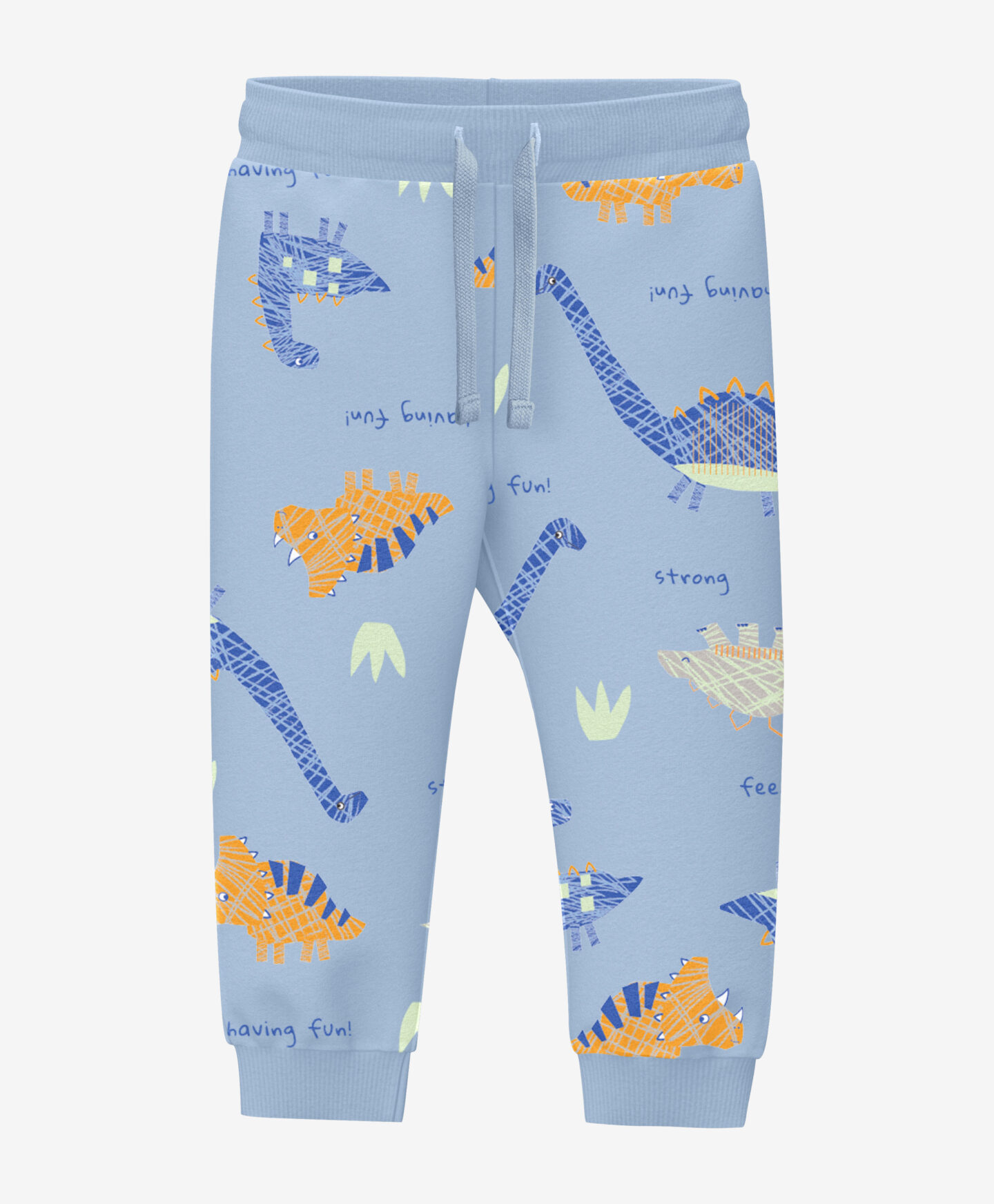 Komplet 2 spodnjih delov trenirke za dojenčke z motivom dinozavrov iz 100% bombaža je nepogrešljiv element vsake garderobe. Spodnja dela trenirke sta mehka in prijetna na otip, vsak pa se ponaša z drugačnim vzorcem. Zaključena sta z elastičnimi manšetami in imata vrvico v pasu, ki omogoča prilagajanje prav vsaki otroški postavi. Na voljo sta tudi ujemajoča zgornja dela trenirke.