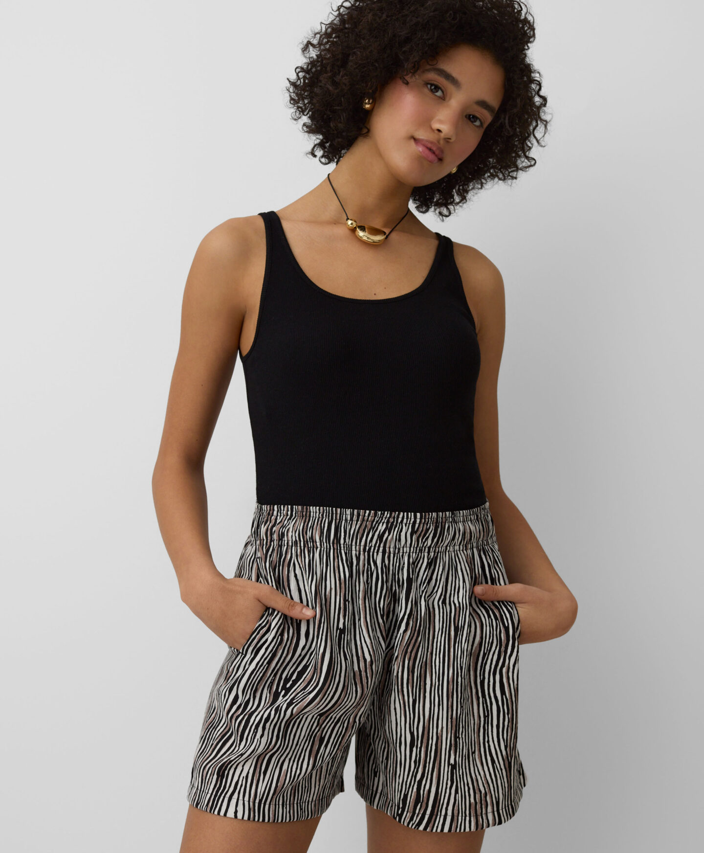 Komplet 2 črtastih topov za ženske bo odlično dopolnil vašo garderobo. Zaradi kombinacije dveh brezčasnih barv – črne in bele – je komplet nepogrešljiv del vaše garderobe. Raztegljiva tkanina z vzorcem lepo pade in koži omogoča, da diha. Oba topa bosta videti odlično v kombinaciji z vašimi najljubšimi kavbojkami, kratkimi hlačami ali bolj elegantnimi chino hlačami.