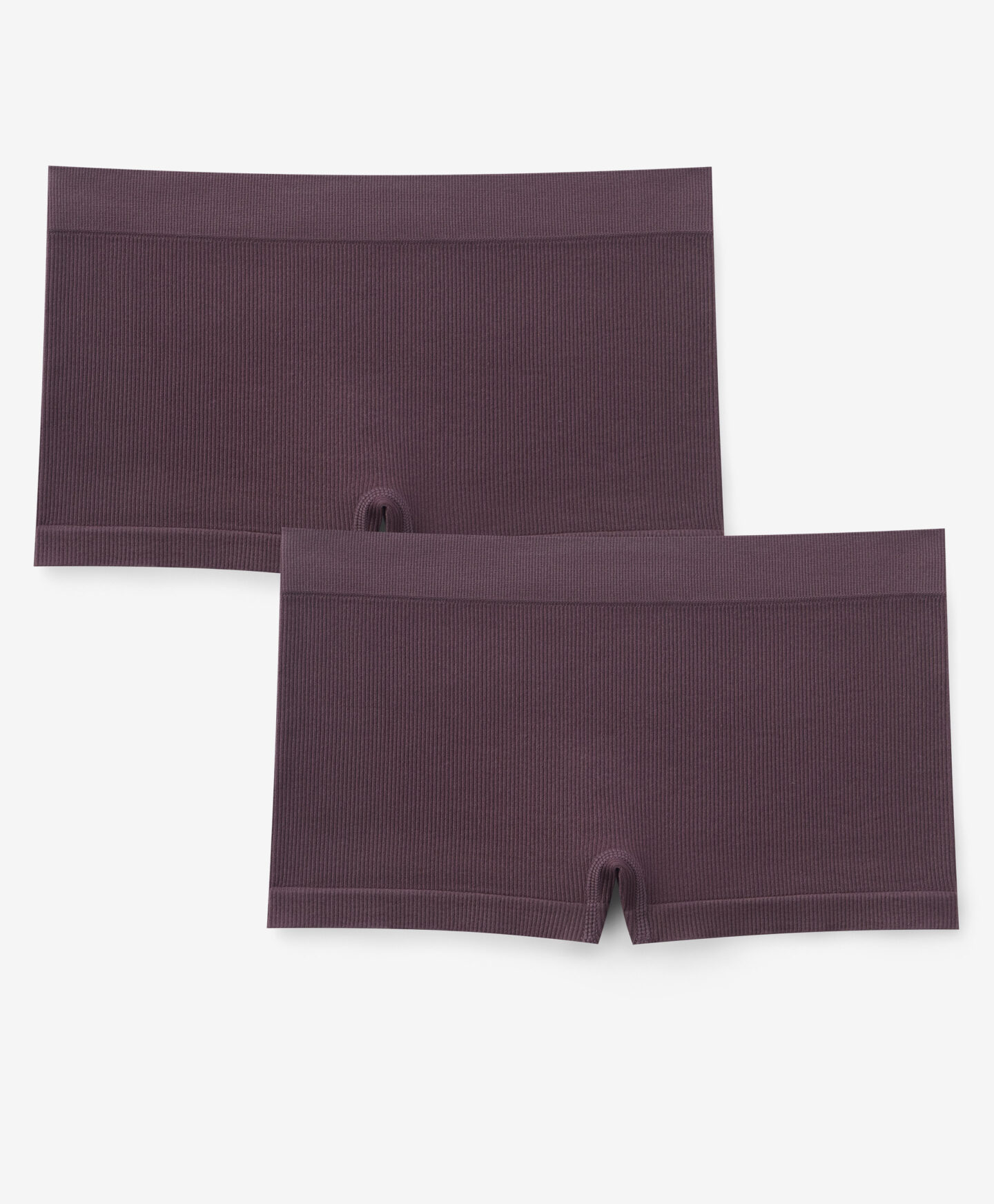 Komplet 2 brezšivnih spodnjic v vijolični barvi je nepogrešljiv kos za vsak dan. Spodnjice omogočajo popolno prekrivanje, zato zagotavljajo udobje in samozavest ob vsaki priložnosti. Brezšivna zasnova zagotavlja, da so nevidne tudi pod tistimi najbolj oprijetimi oblačili. Na voljo v štirih barvah.