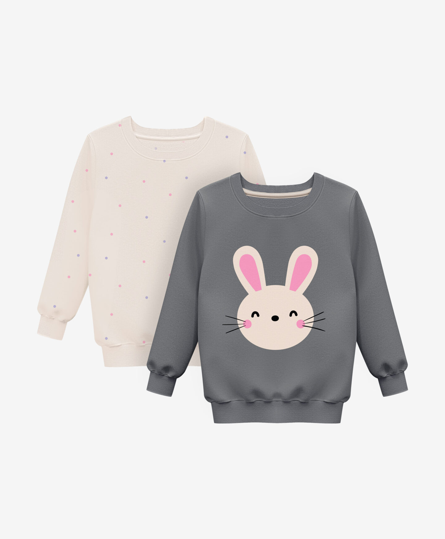 Komplet 2 zgornjih delov trenirke za dojenčice 100% bombaž z motivom zajčka