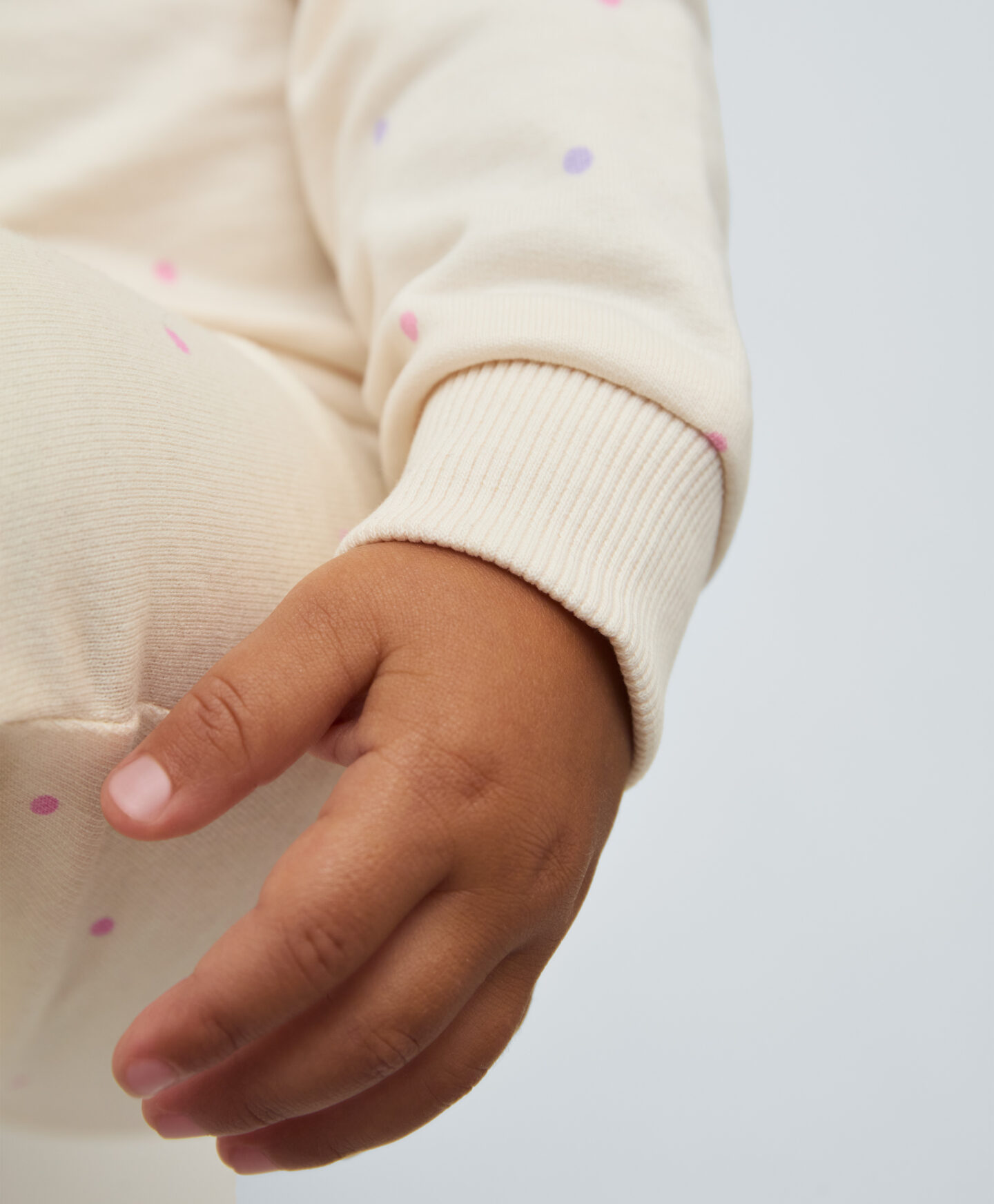 Komplet 2 zgornjih delov trenirke za dojenčice iz 100% bombaža z motivom zajčka se odlično ujema s spodnjima deloma iz ponudbe. Zgornja dela trenirke sta mehka, topla in imata elastične zaključke. Takšen komplet preprosto mora biti v del vsake otroške garderobe!