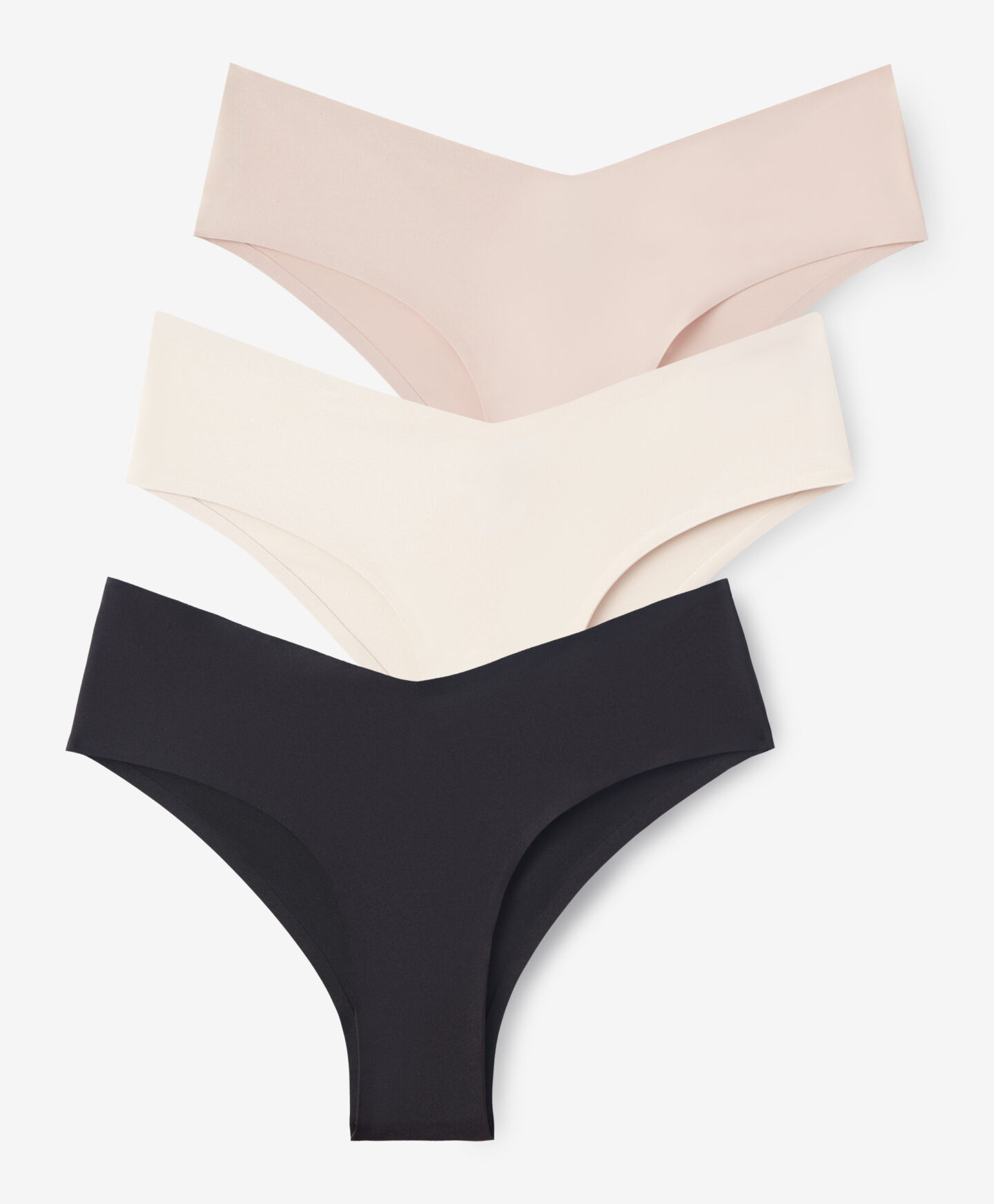 Komplet 3 brezšivnih brazilskih spodnjic združuje udobje mehkih zaključkov z nežnostjo in elastičnostjo mikrovlaken. Brazilski kroj z višjim izrezom lepo poudari postavo. Komplet vključuje spodnjice v treh različnih barvah, ki bodo popolne za vsakdan.
