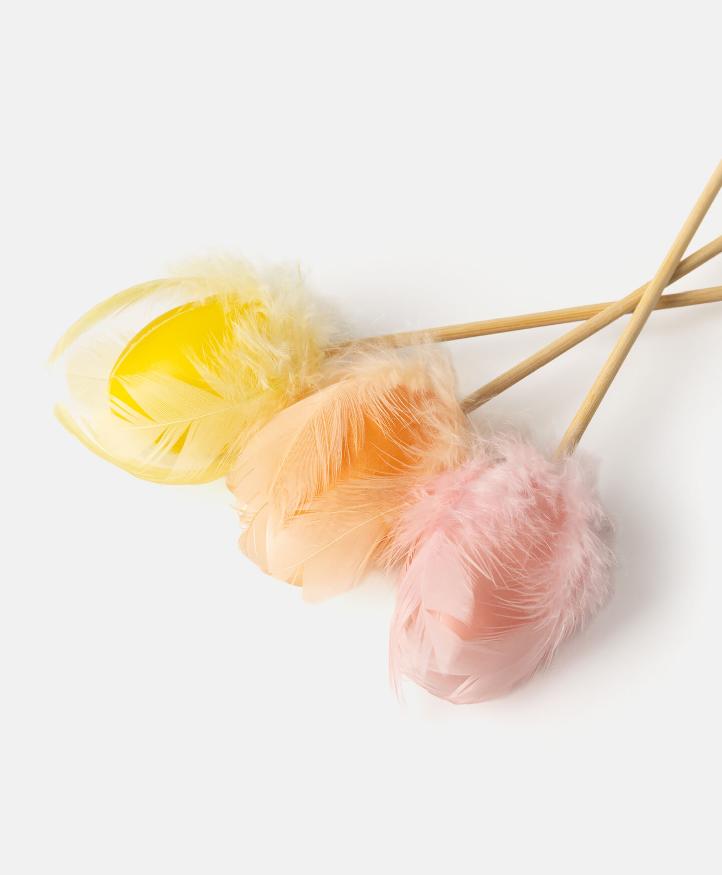 Komplet 3 pirhov s perjem na leseni palčki bo dodal čar in velikonočni pridih vsakemu cvetličnemu aranžmaju ali namizni dekoraciji. Pirhe lahko postavite tudi v velikonočno košarico ali okrasni lonček s sobno rastlino. Pastelne barve pritegnejo oko, perje pa doda dekorativni pridih in kanček lahkotnosti.