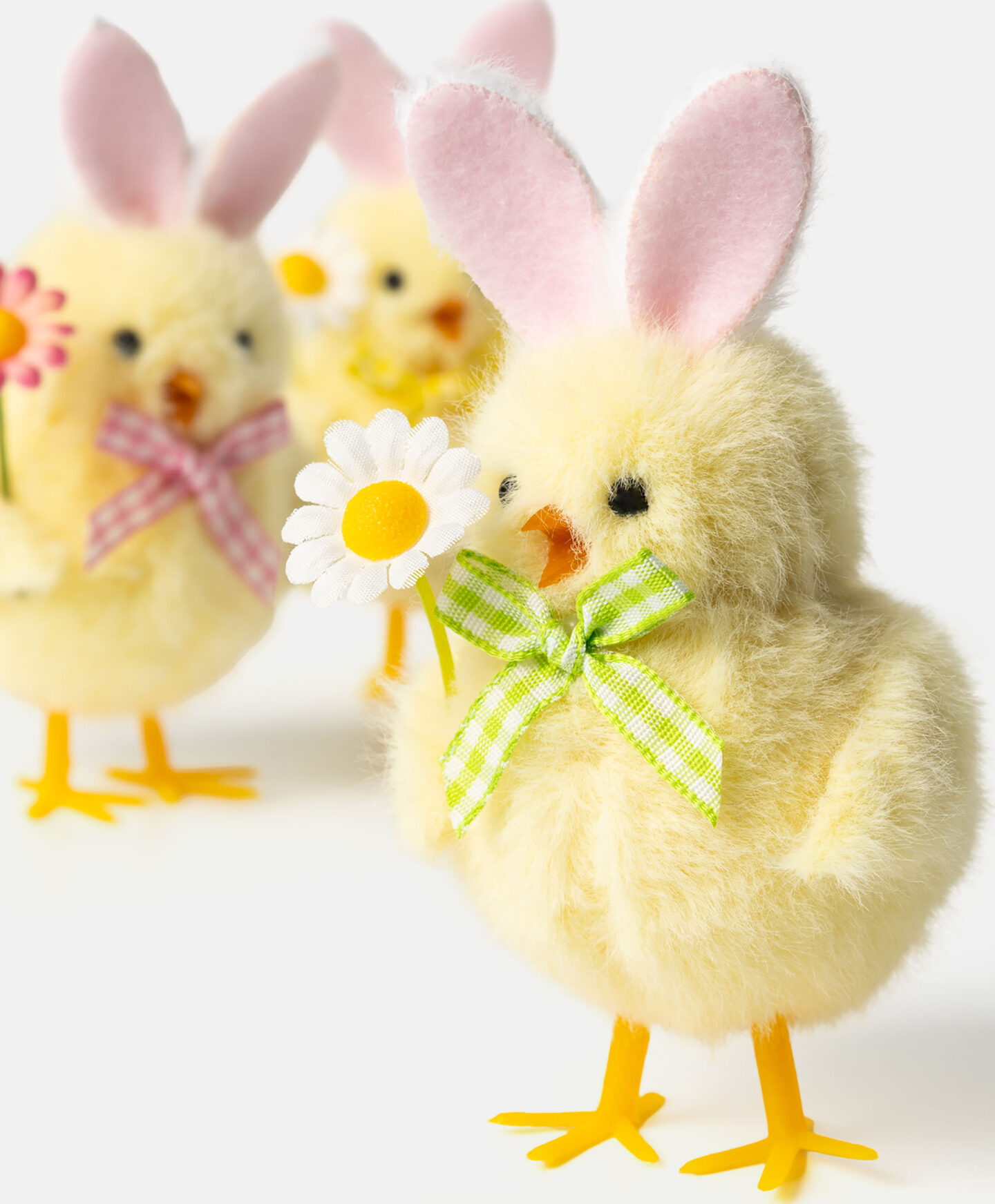 Komplet 3 piščančkov bo odlično dopolnil pomladno okrasje, ali pa služil kot dodatek na polici ali v velikonočni košari. Za kanček humorja in dodatno veselje pa bodo poskrbela zajčja ušeska!