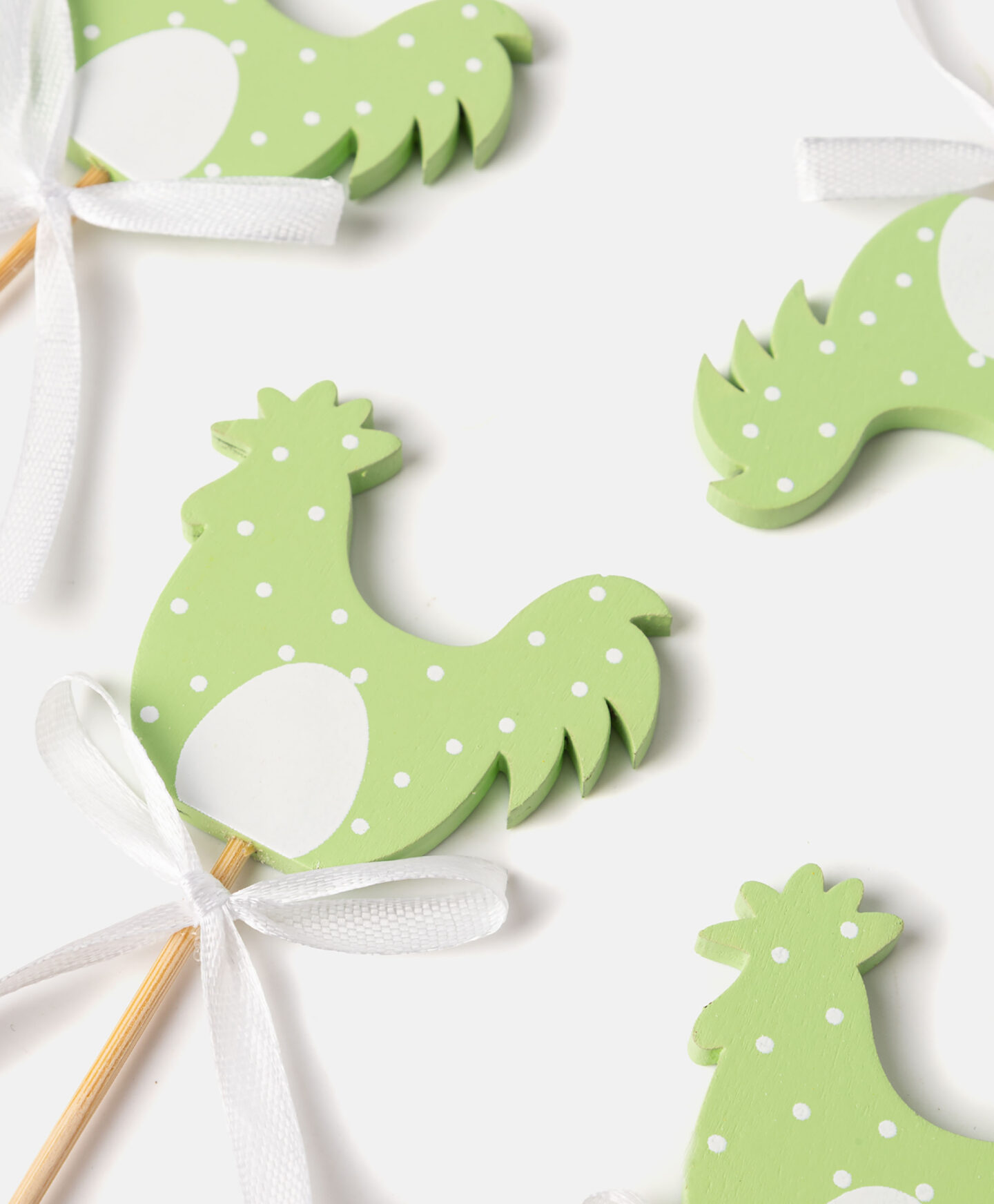 Komplet 4 okrasnih paličic z motivom petelina s pentljo je elegantna dekoracija, ki jo je navdihnila velika noč. Komplet je popoln za okrasitev košar, lončnic ali šopkov. Na voljo so različni motivi.