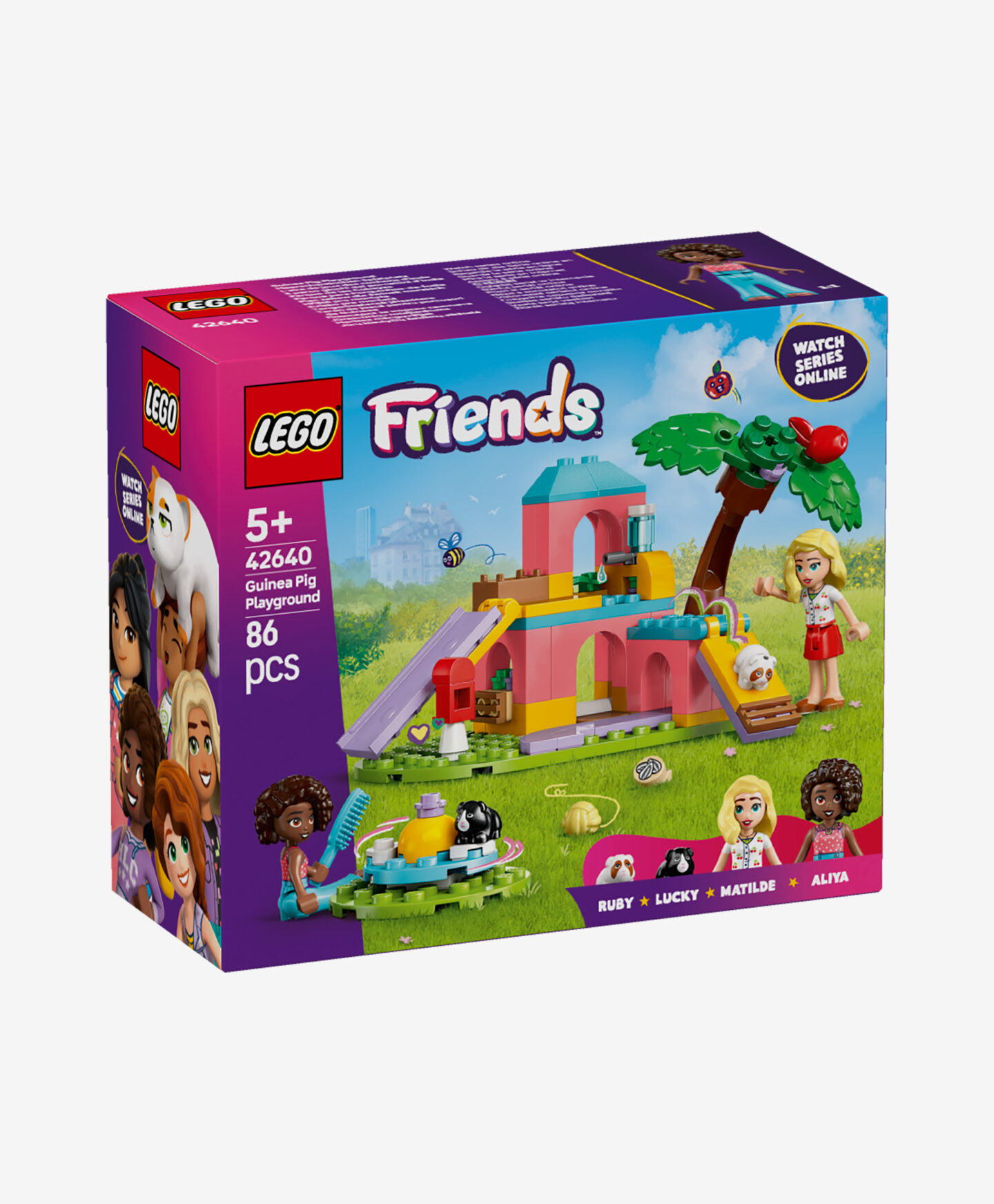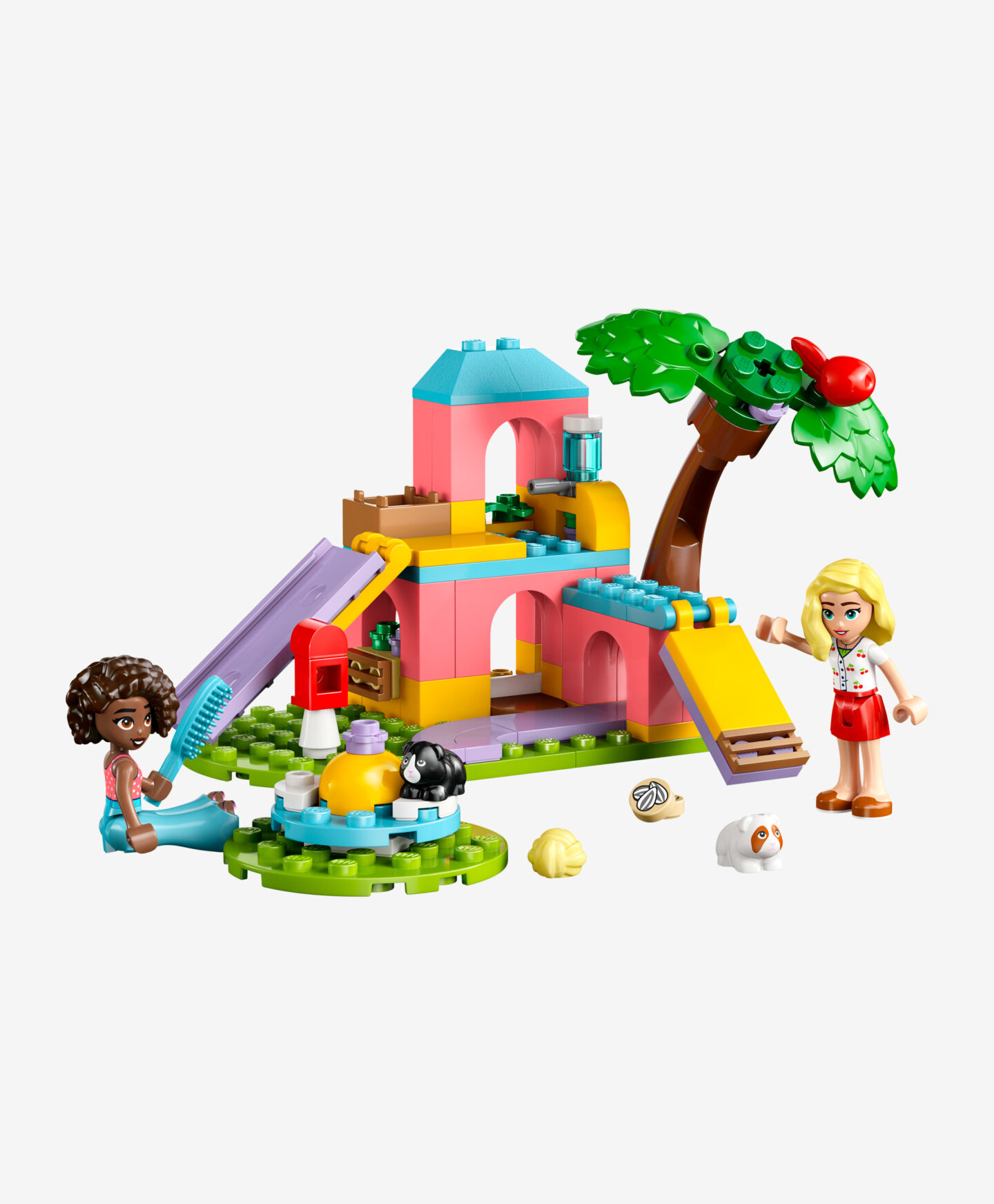 Komplet LEGO® Friends Igrišče za morske prašičke otrokom odpira svet prikupnih domačih živali. V kompletu najdete barvit poligon, vrtiljak in dodatki, ki ustvarjajo prostor, poln atrakcij za morske prašičke.