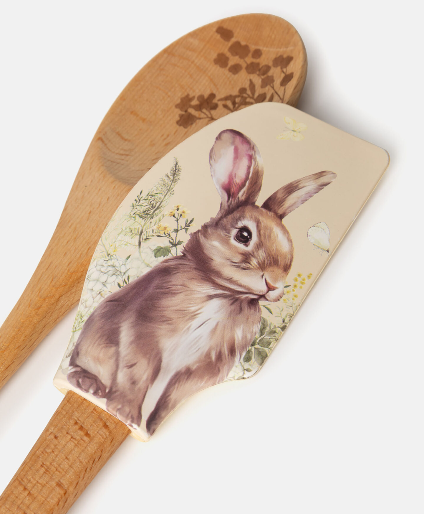 Komplet pripomočkov za peko vsebuje leseno kuhalnico in silikonsko spatulo z velikonočnimi motivi. Komplet je popoln za tiste, ki radi pečejo, kuhajo in ustvarjajo. Pripomočki so odporni na toploto in praske ter enostavni za čiščenje.