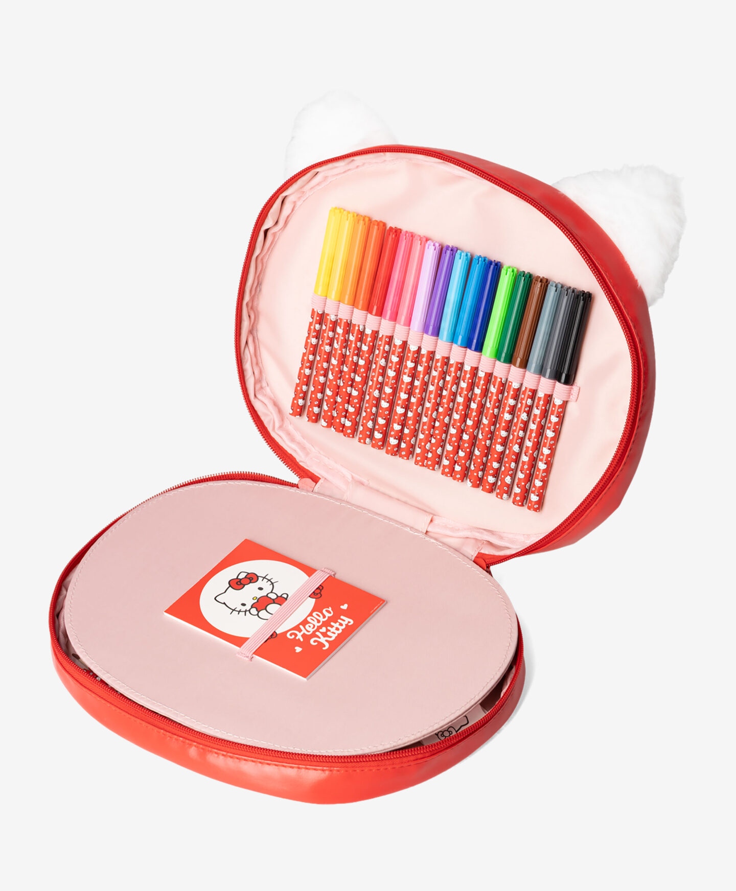 Komplet pisalnih pripomočkov v peresnici v obliki Hello Kitty s 3D ušesi vsebuje vse, kar otrok potrebuje za šolo. Ljubka puhasta peresnica ni le lepa, temveč tudi pomaga pri organizaciji. Komplet je odlična ideja za darilo za vse mlade umetnike in umetnice, ki jih navdušuje priljubljena risana junakinja.