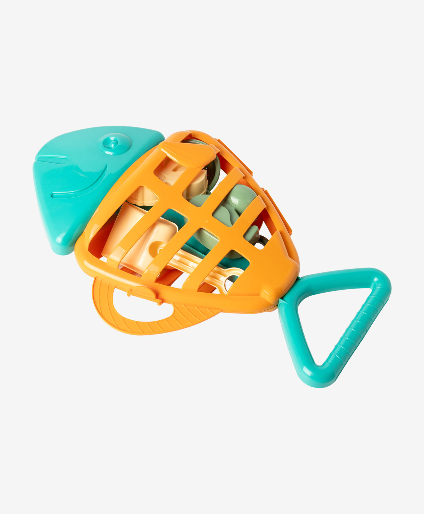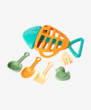 Komplet za peskovnik v obliki ribe je nekaj za vse otroke, ki se radi igrajo v peskovniku! Komplet je narejen iz lahke plastike, zato je trpežen, enostaven za uporabo in popoln za majhne ročice. Vsebuje prav vse, kar boste potrebovali za gradnjo peščenih gradov ali drugih struktur. V ribi boste našli 2 lopatki, 2 modelčka, grablje in jadrnico. V ponudbi so na voljo različni dizajni.