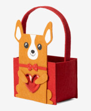 Košara iz filca z motivom kužka je popoln način, da ljubljeni osebi narišete nasmeh na obraz in poudarite edinstvenost vašega darila. Služila bo kot očarljiva embalaža za darila za valentinovo, kot so čokolada, dišeča sveča, nakit ali druge romantične pozornosti. Na voljo v treh različicah.