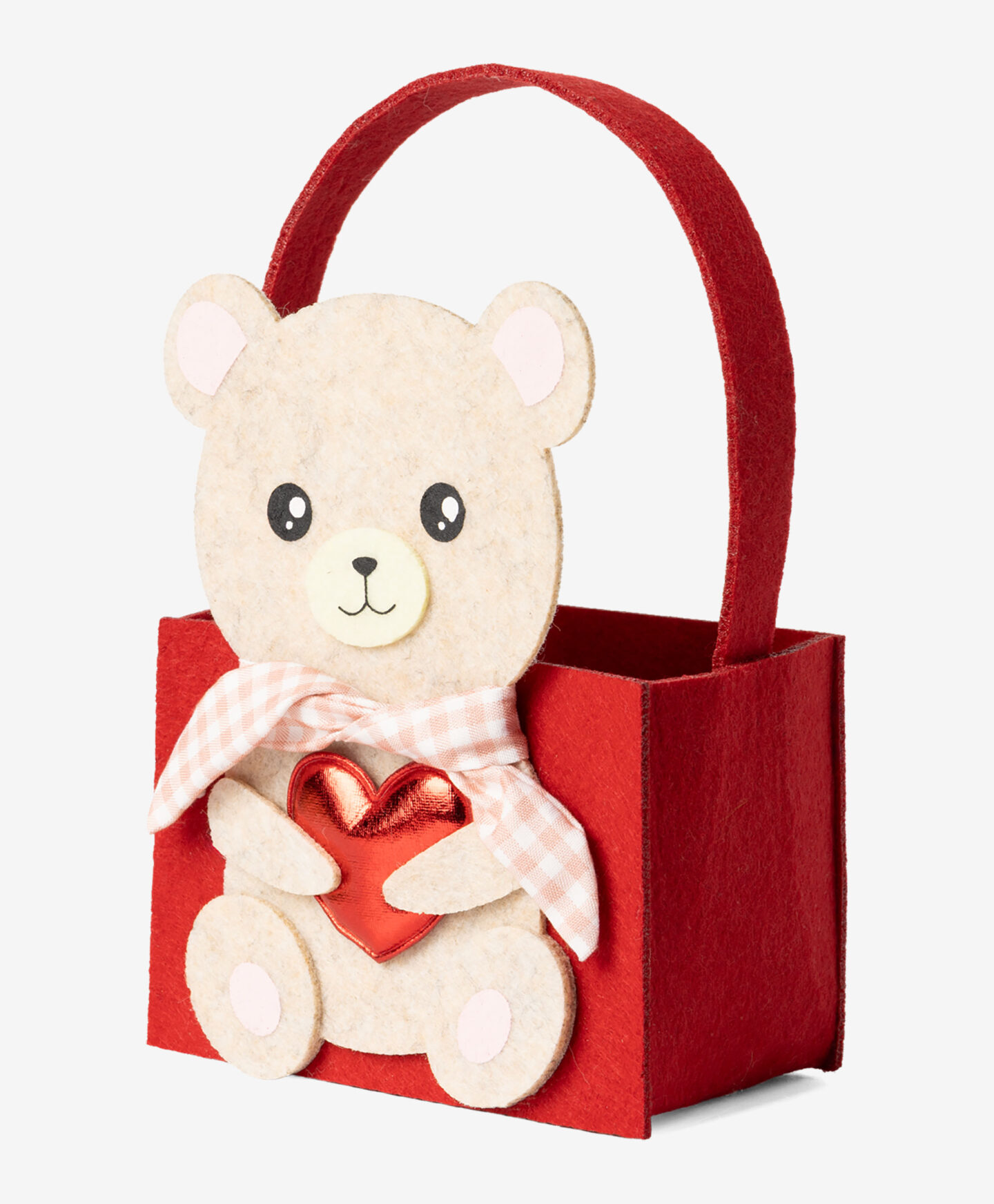 Košara iz filca z motivom medvedka je popoln način, da ljubljeni osebi narišete nasmeh na obraz in poudarite edinstvenost vašega darila. Služila bo kot očarljiva embalaža za darila za valentinovo, kot so čokolada, dišeča sveča, nakit ali druge romantične pozornosti. Na voljo v treh različicah.