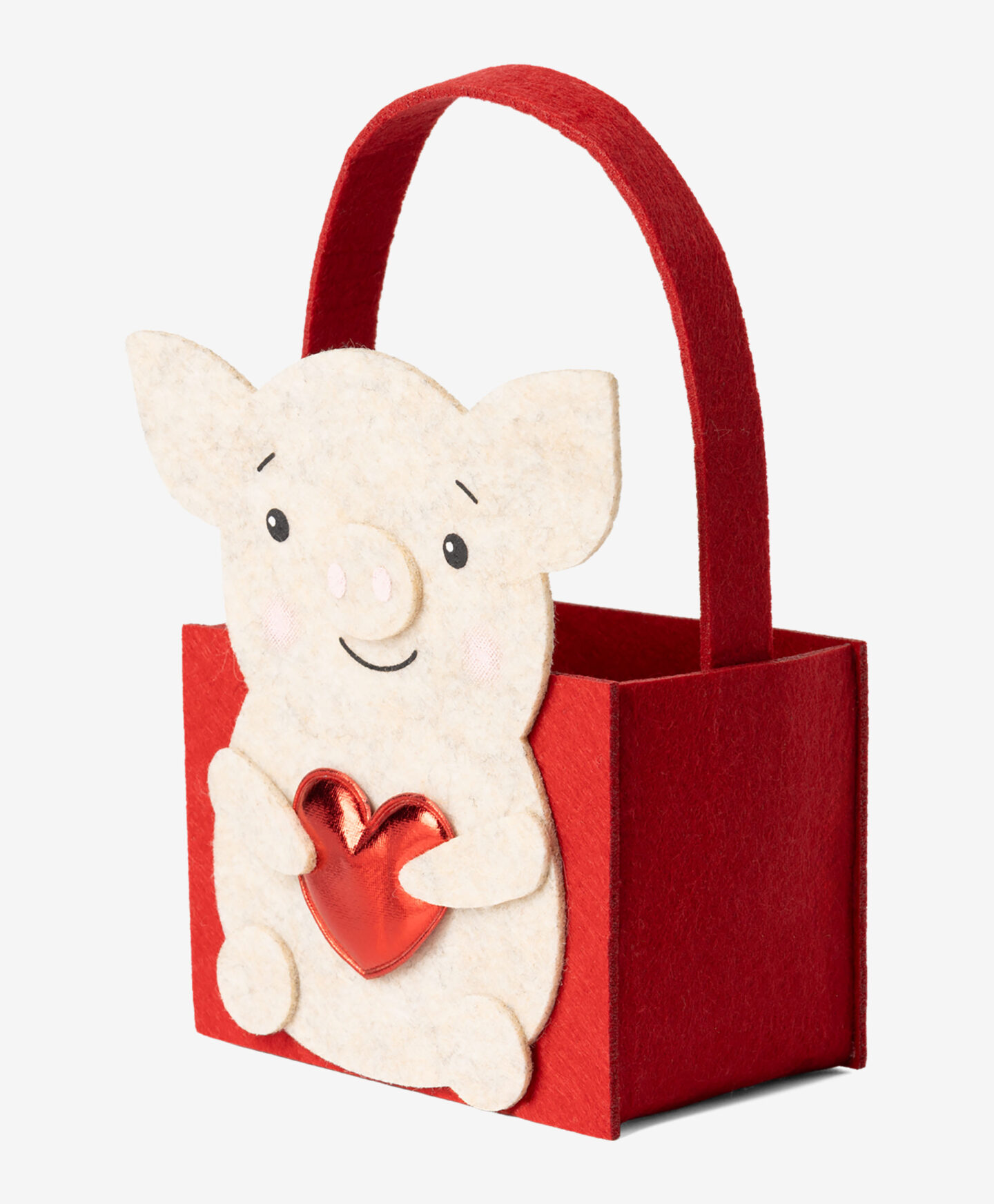Košara iz filca z motivom prašička je popoln način, da ljubljeni osebi narišete nasmeh na obraz in poudarite edinstvenost vašega darila. Služila bo kot očarljiva embalaža za darila za valentinovo, kot so čokolada, dišeča sveča, nakit ali druge romantične pozornosti. Na voljo v treh različicah.