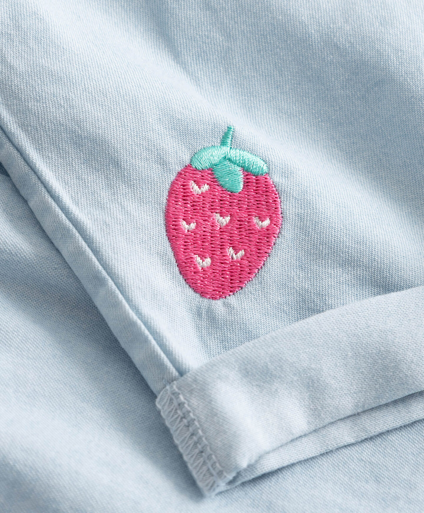 Kratke hlače za dojenčke iz jeansa so nepogrešljiv kos vsake otroške garderobe! Kratke hlače so mehke in ne omejujejo gibanja med kobacanjem ali igranjem v vozičku. Široka in udobna elastika v pasu zagotavlja udobje. Okrasni vezeni detajli dajejo hlačam edinstven značaj.