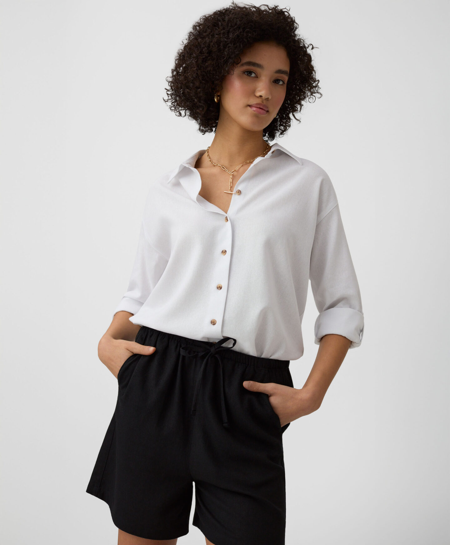 Kratke hlače za ženske v univerzalni črni barvi so nepogrešljiv kos vsake garderobe. So lahke, zračne in udobne. Brezčasna črna barva omogoča kombiniranje s katerokoli majico, srajco ali topom iz vaše garderobe in ustvarjanje najrazličnejših videzov.