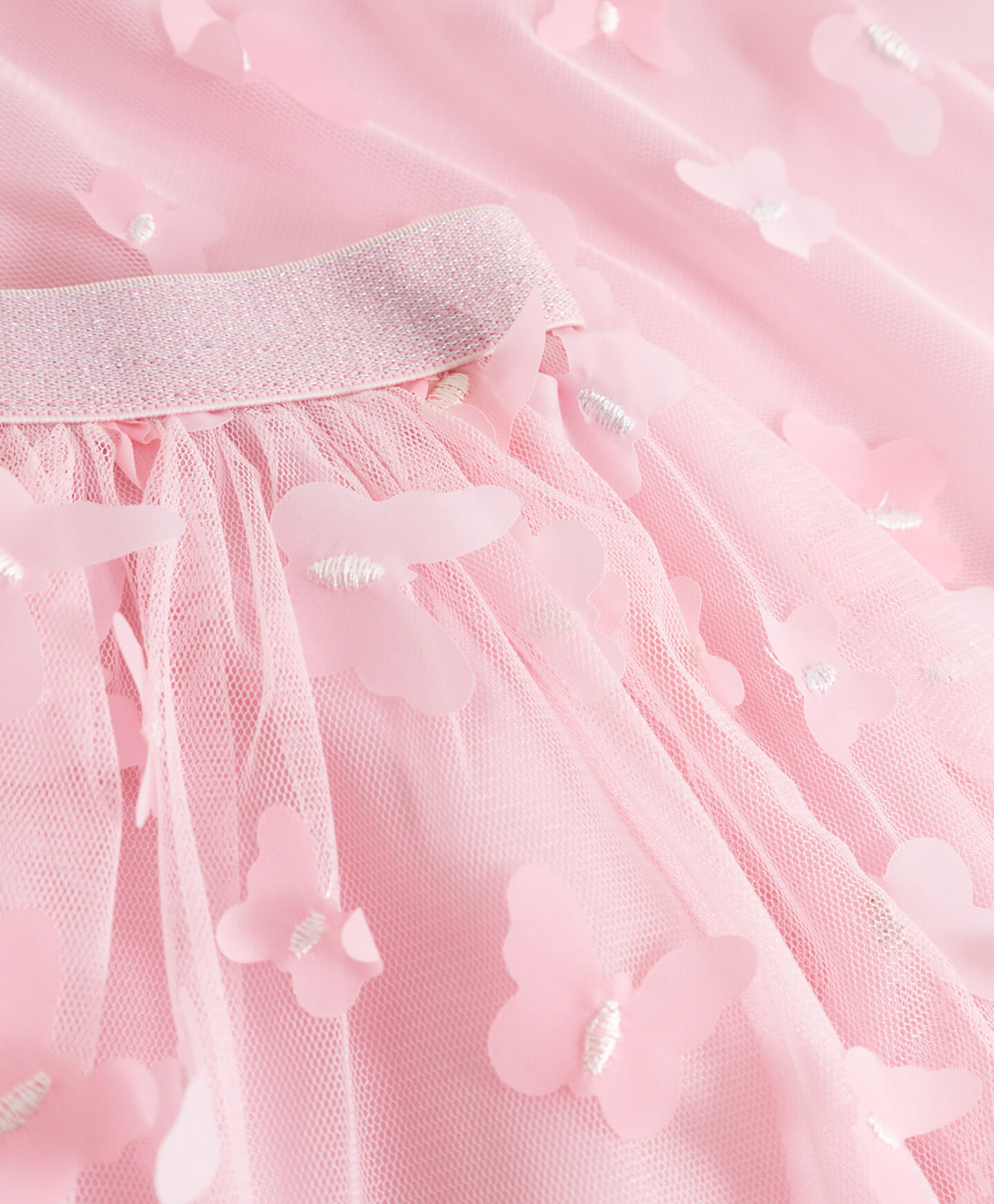 Krilo iz tila s 3D metulji za deklice bo vašemu otroku omogočilo, da izrazi svoj osebni stil. Je lahkotno in udobno, elastika v pasu pa zagotavlja popolno prileganje vsaki postavi. Plast tila doda krilu volumen, našiti metuljčki pa pravljični pridih. Krilo bo kot nalašč za toplejše dni, lahko pa ga kombinirate s hlačnimi nogavicami ali pajkicami. Na voljo je tudi ujemajoča majica.