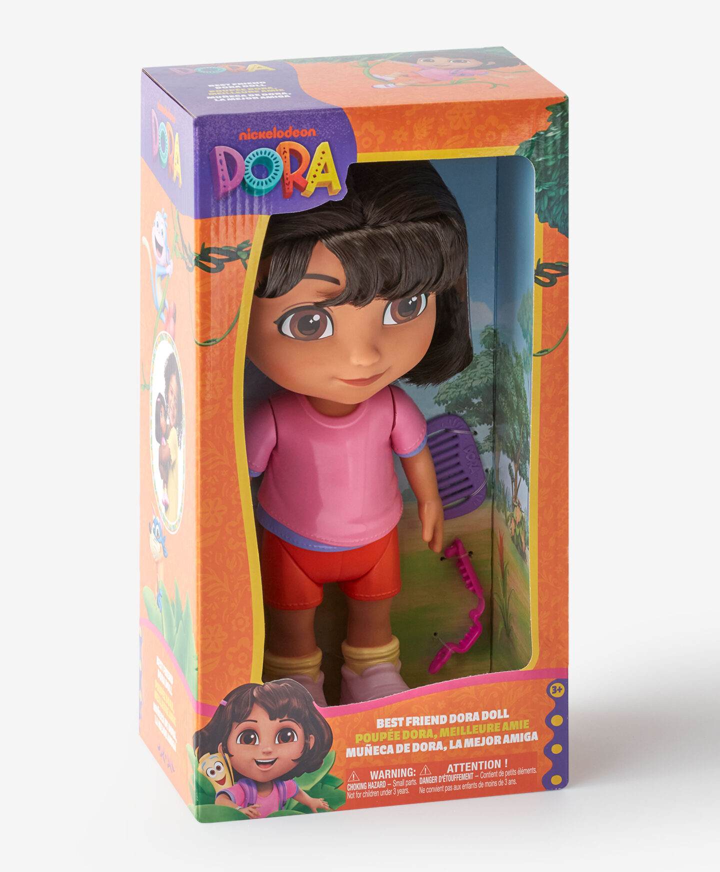 Lutka Dora male otroke popelje v svet dogodivščin. Oblečena je v rožnato majico in oranžne hlače, zato jo po videzu takoj prepoznate. Realistični detajli in njen prepoznaven nasmeh igranje naredijo še bolj zanimivo in polno domišljije.