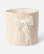 Majhna okrogla škatla s pentljo služi kot subtilna dekoracija prav vsakega prostora. Popolna je za shranjevanje malenkosti, kot so nakit, ključi ali druge drobnarije. Ker nima pokrova, omogoča hiter dostop do njene vsebine. Zaradi elegantnega dizajna jo lahko postavite tako na nočno omarico v spalnici kot na pisalno mizo v pisarni.