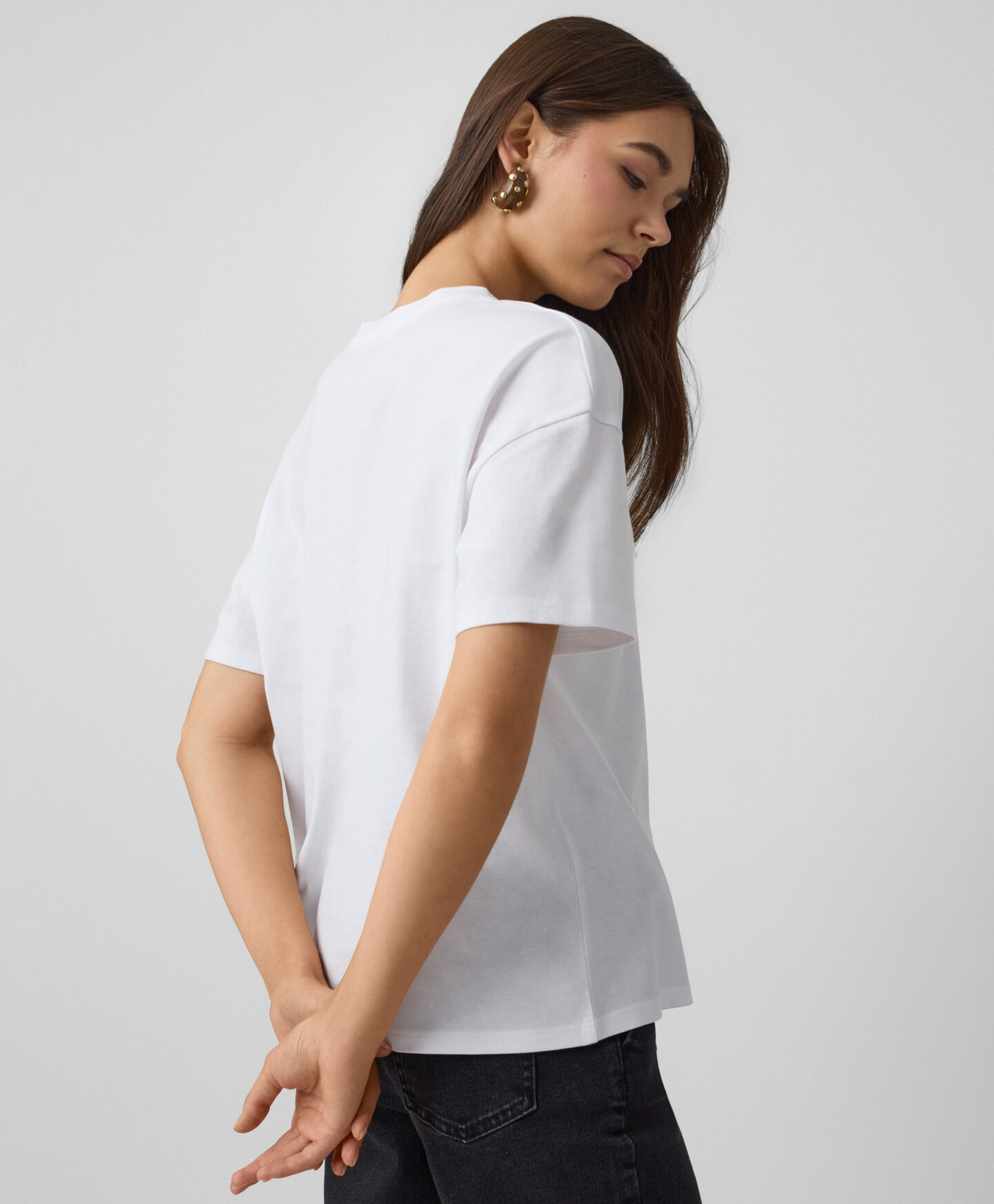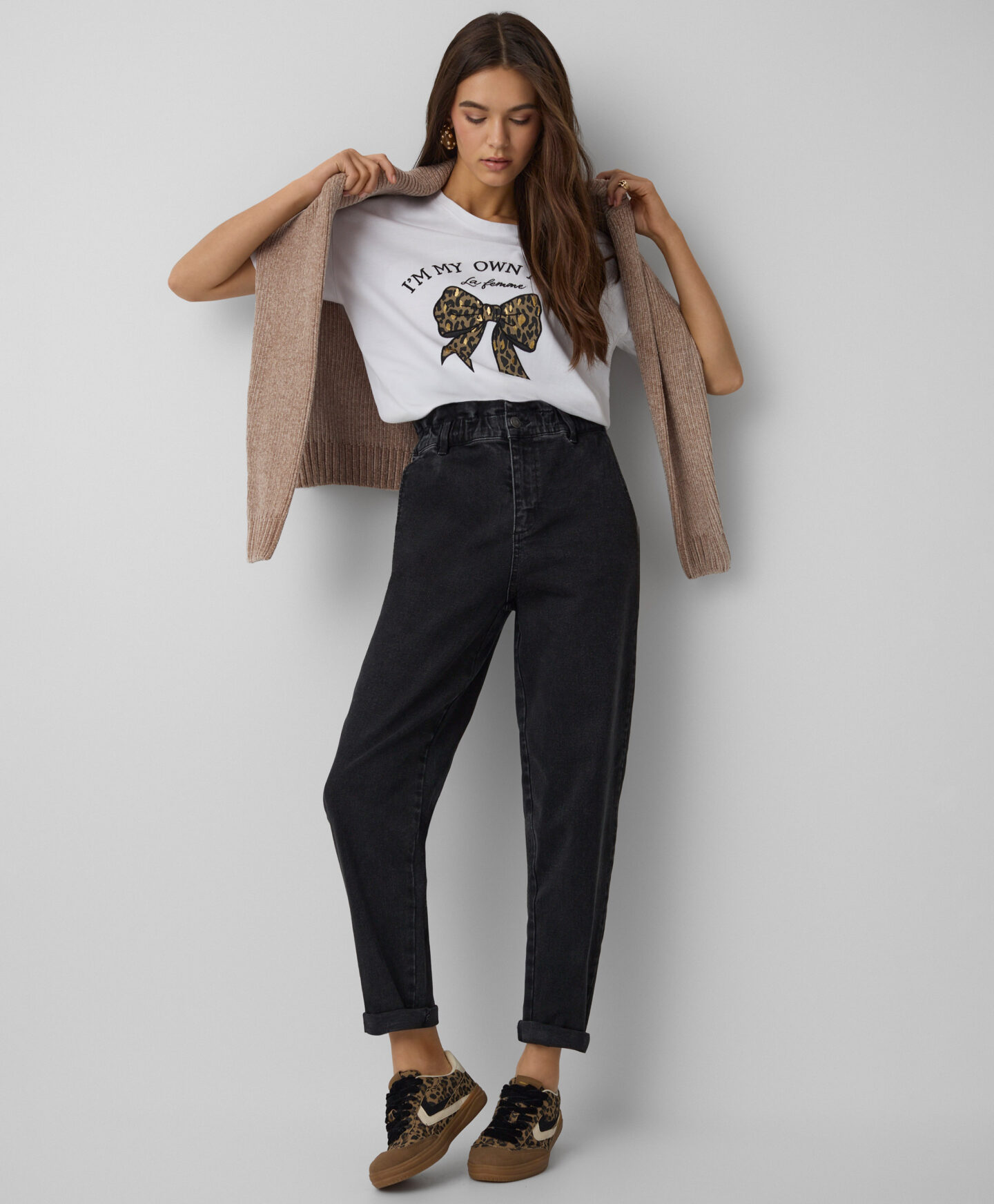 Majica za ženske s pentljo iz 100% bombaža je popolna tako za vsakdan kot za posebne priložnosti. Material majice je koži prijazen in zagotavlja celodnevno udobje. Pentlja na sprednji strani je subtilen, a vpadljiv detajl, ki vsakemu outfitu doda poseben čar.