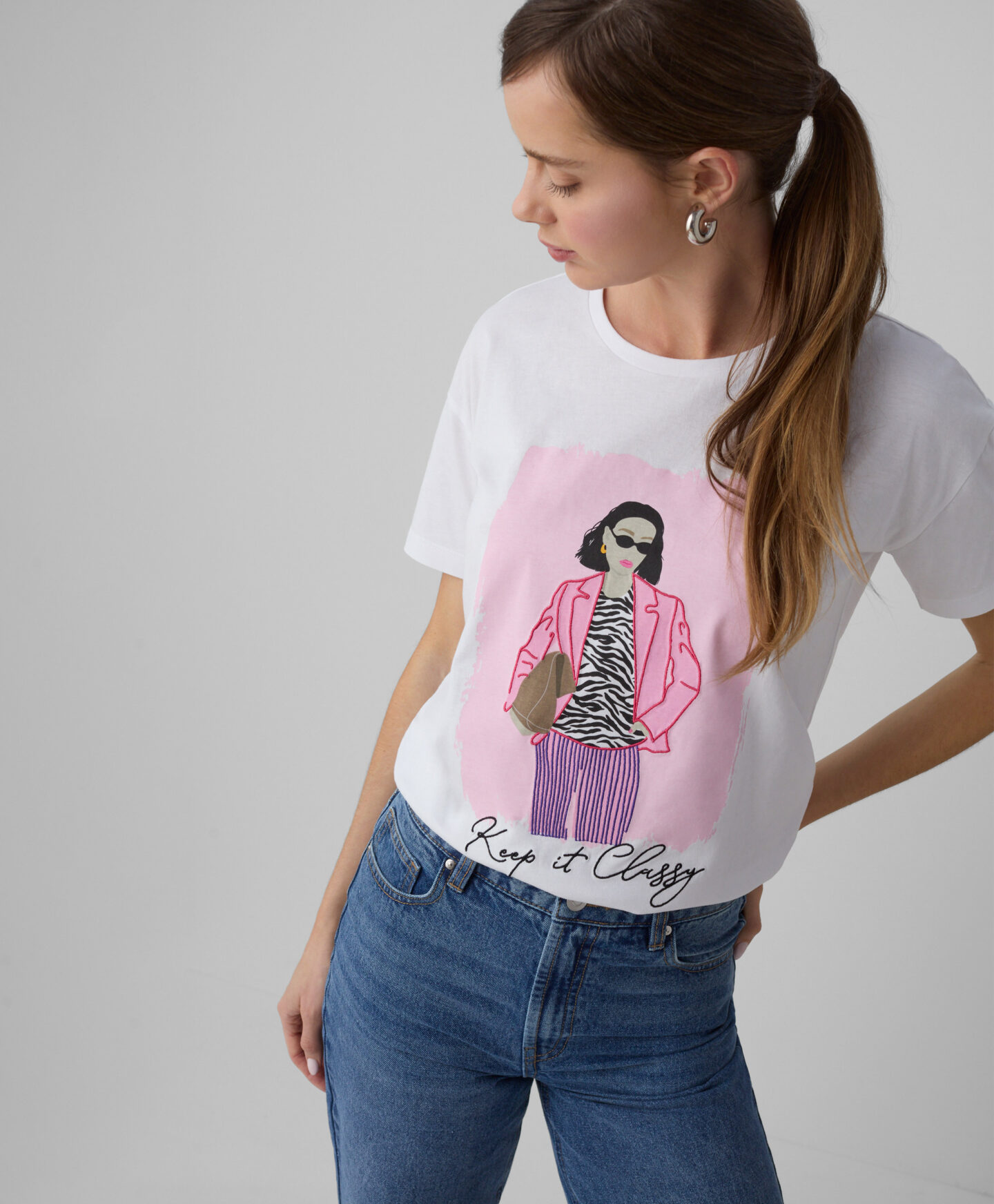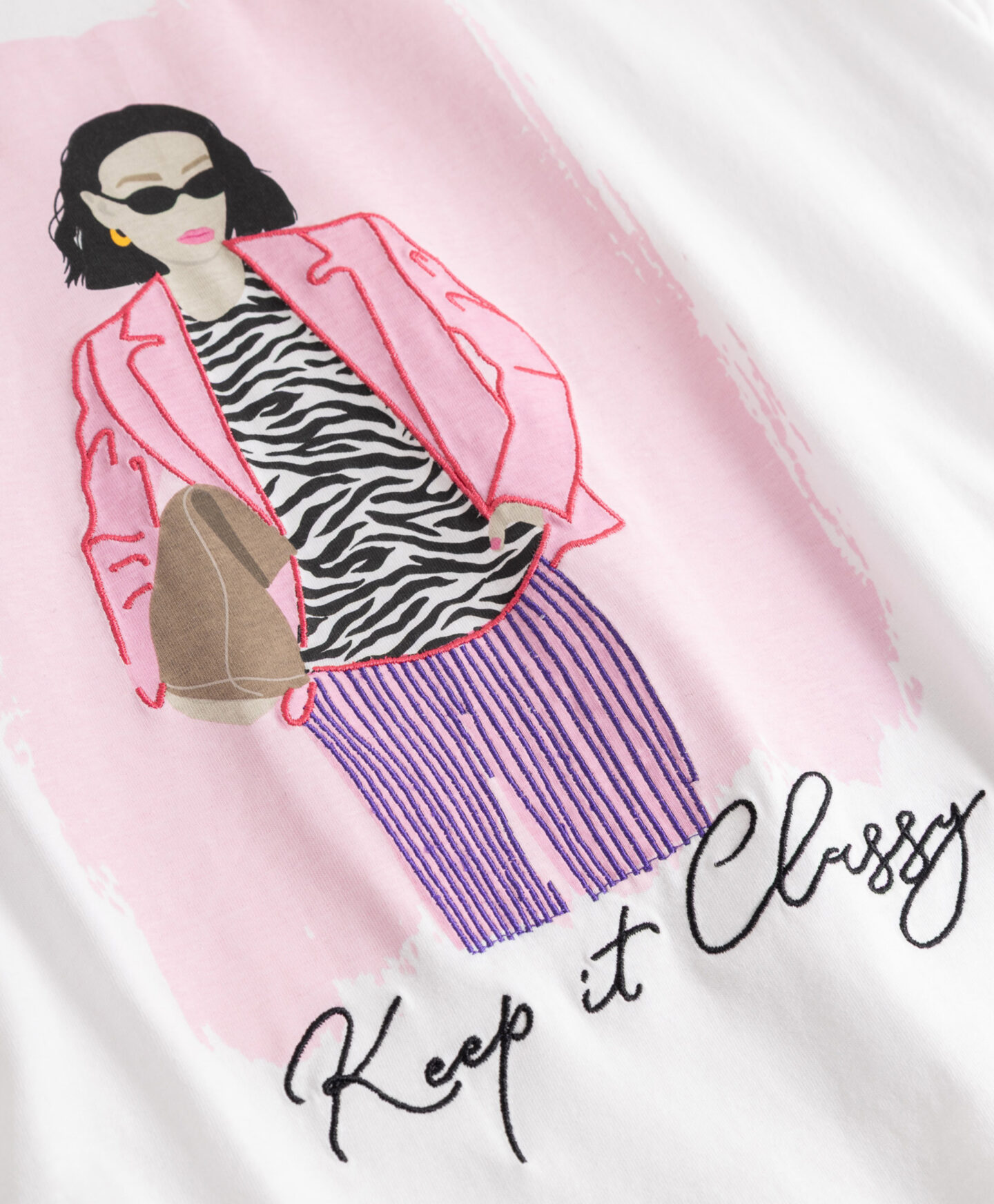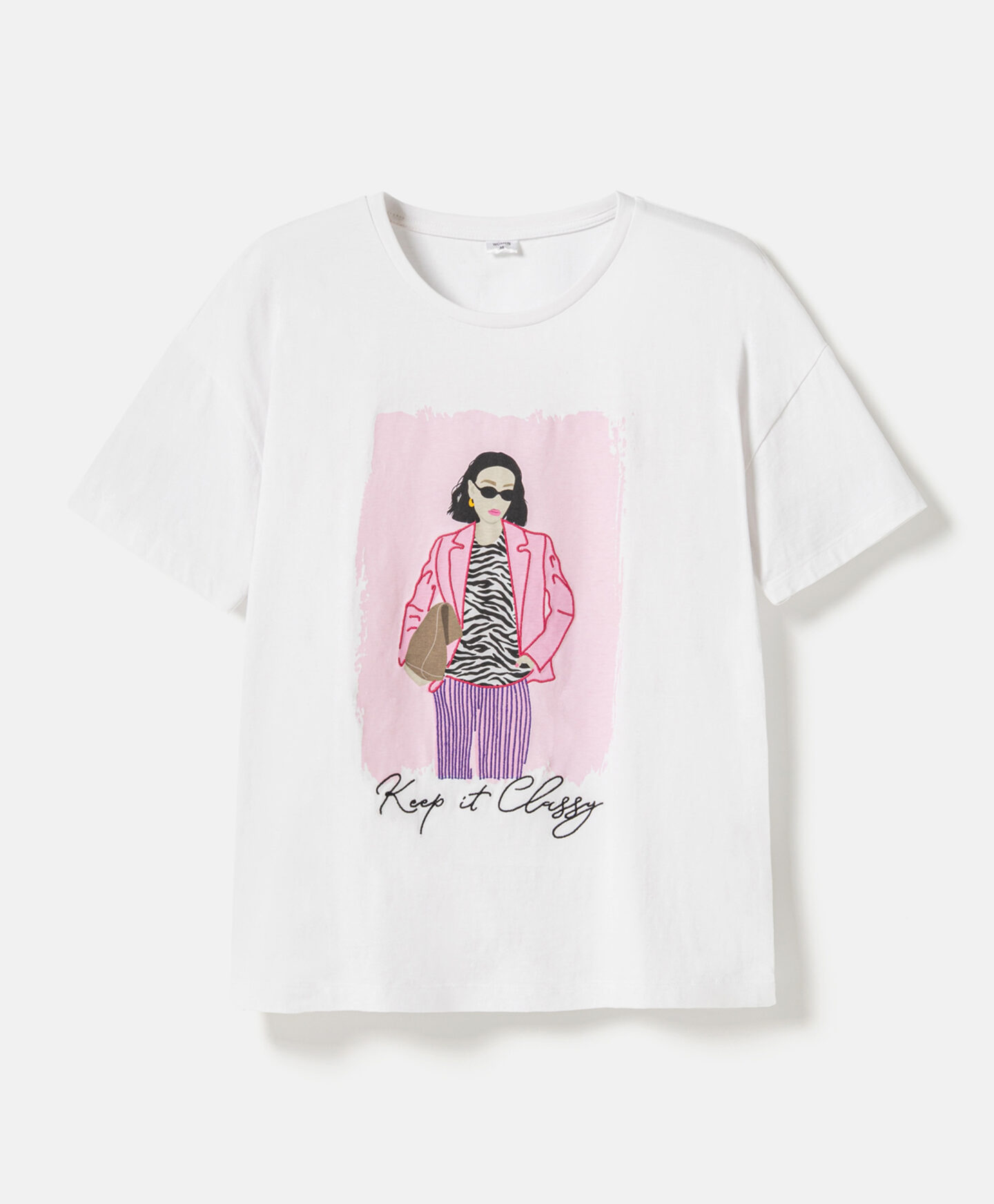 Majica za ženske iz 100% bombaža je koži prijazna, zračna in enostavna za vzdrževanje. Naravni material zagotavlja udobje pri celodnevnem nošenju, ne glede na situacijo. Majica ima eleganten potisk, ki jo navdaja z izvirnostjo. Je odlična izbira za ženske, ki se želijo izražati skozi modo.