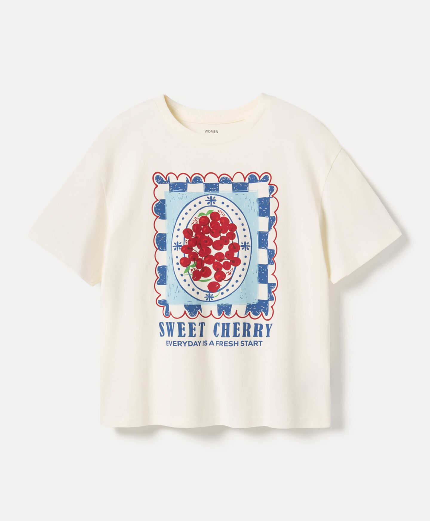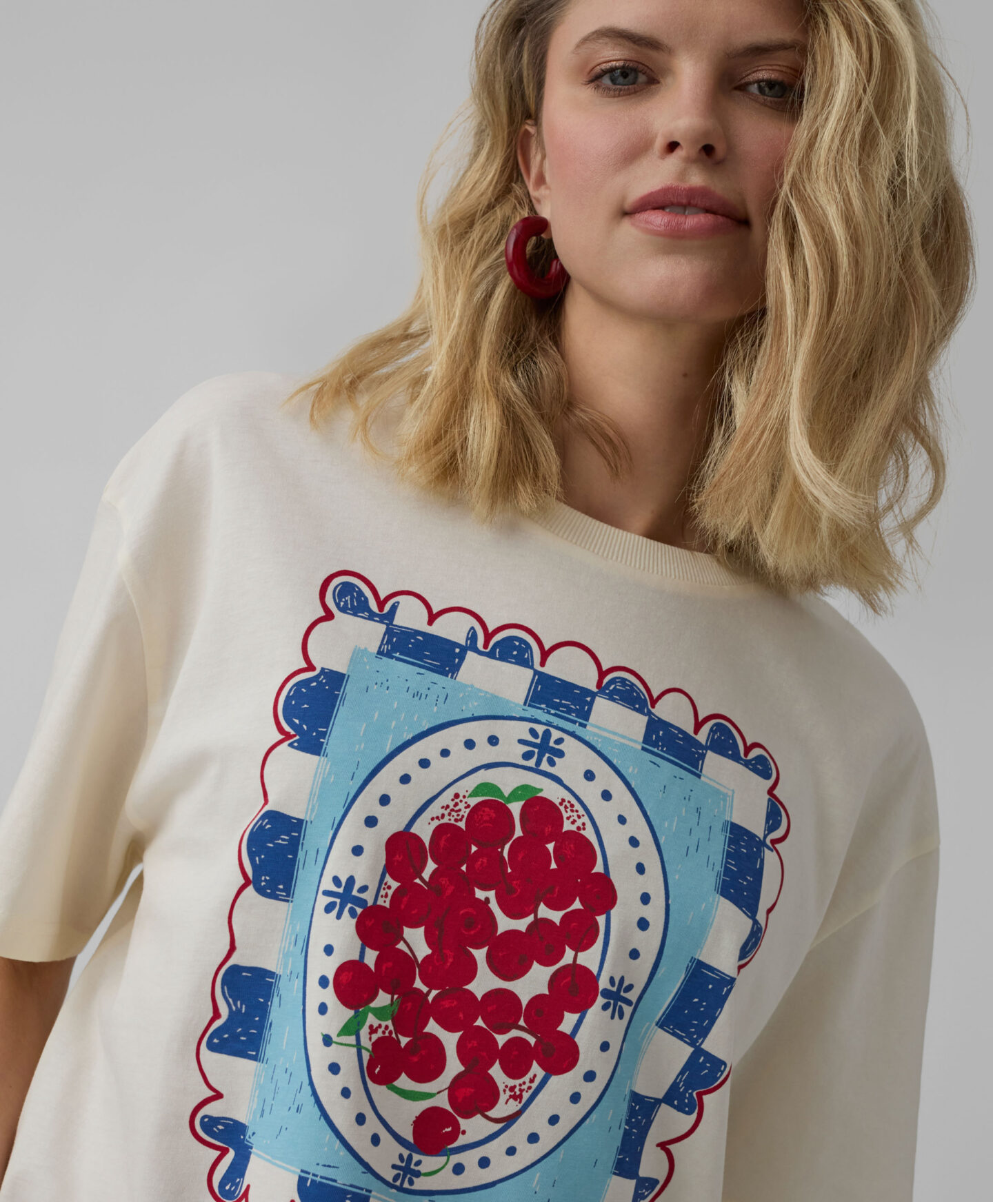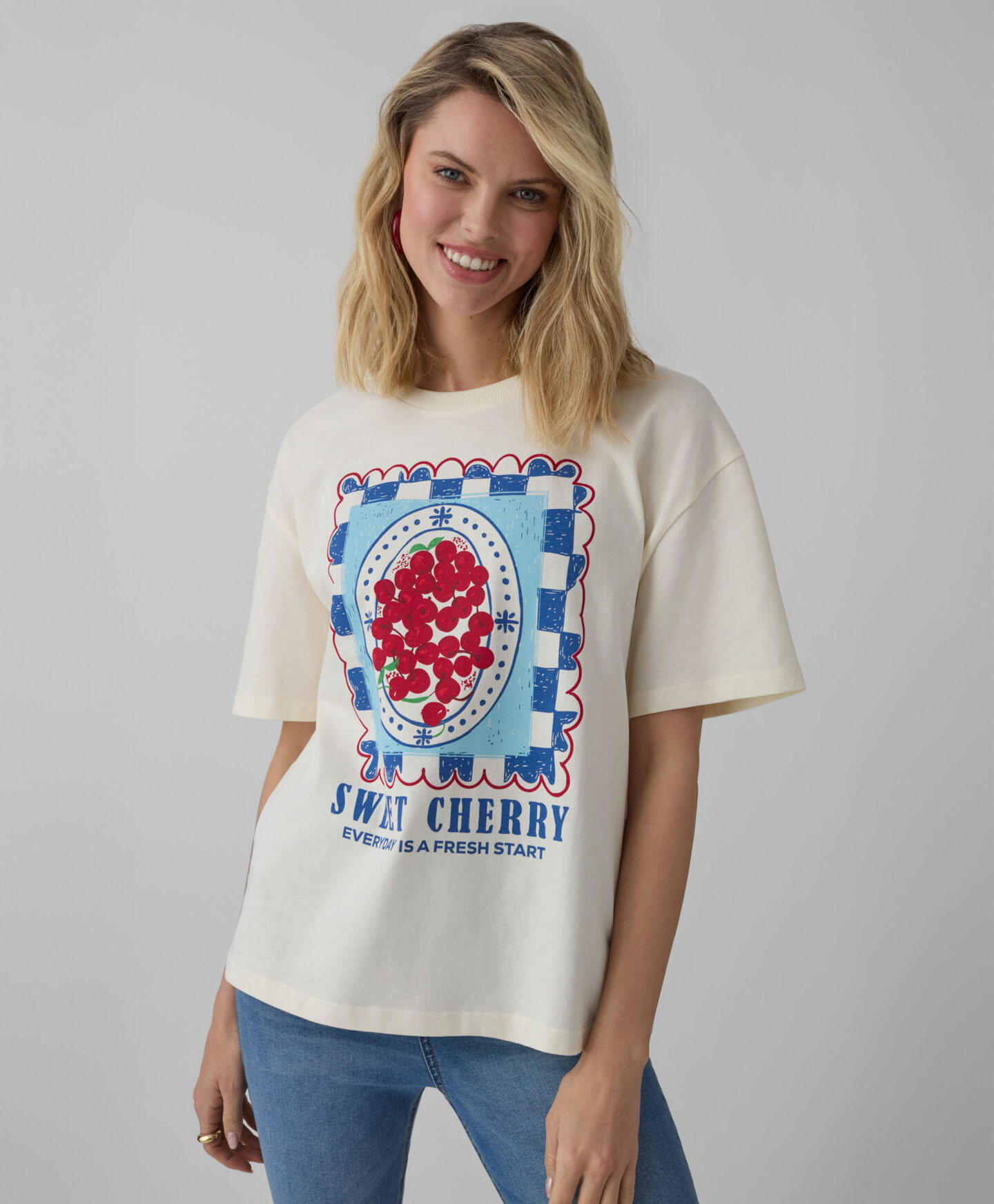 Majica za ženske iz 100% bombaža z grafiko z motivom češnje je nekaj za vse modne navdušenke. Potisk na sprednji strani pritegne pogled in poskrbi, da majica izstopa. V kombinaciji s klasičnimi kavbojkami tvori univerzalen outfit, ki bo popoln za srečanja s prijatelji, vsakodnevne nakupe ali sprehode s psom.
